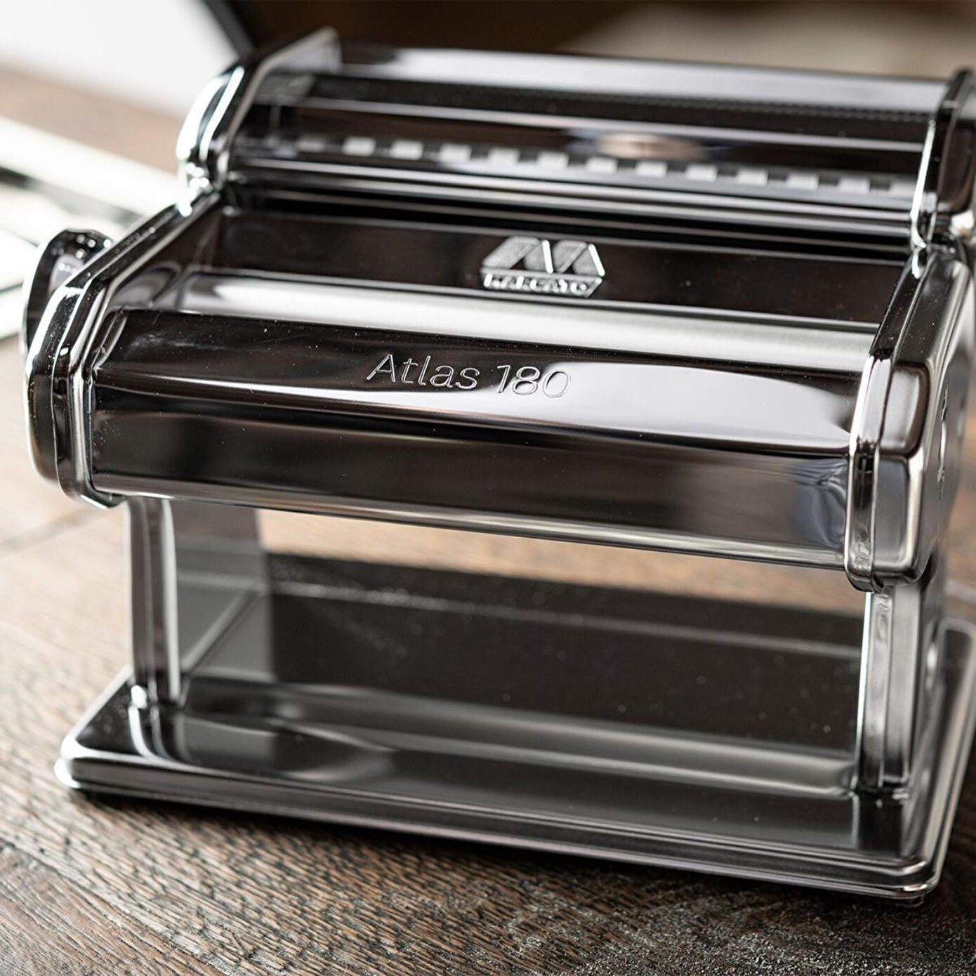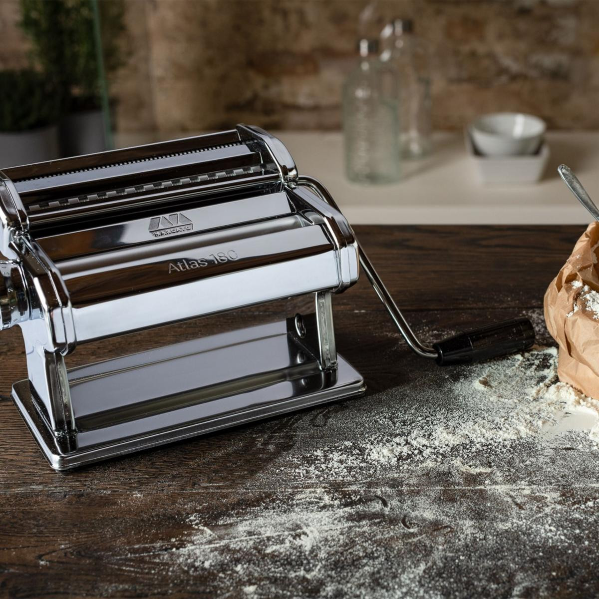 Atlas 180 manuel makarna makinasının üretiminde yüksek kaliteli krom çelik kullanılmıştır ve İtalya'da özenle işlenip monte edilmiştir.Ürünün her bir parçası, ürünün estetik görünümünü iyileştirmek ve dayanıklılığını sağlamak için en ince detaylara kadar özenle tasarlanmıştır.Makine 18 cm genişliğinde makarna hamuru açar ve 10 farklı hamur kalınlığı ayarı bulunmaktadır. (4,8 mm-0,60 mm)Ürün, lasanya, fettuccine ve tagliolini gibi üç aksesuar ile gelmektedir. Bu da kullanıcılara farklı makarna çeşitlerini hazırlama esnekliği sunar.