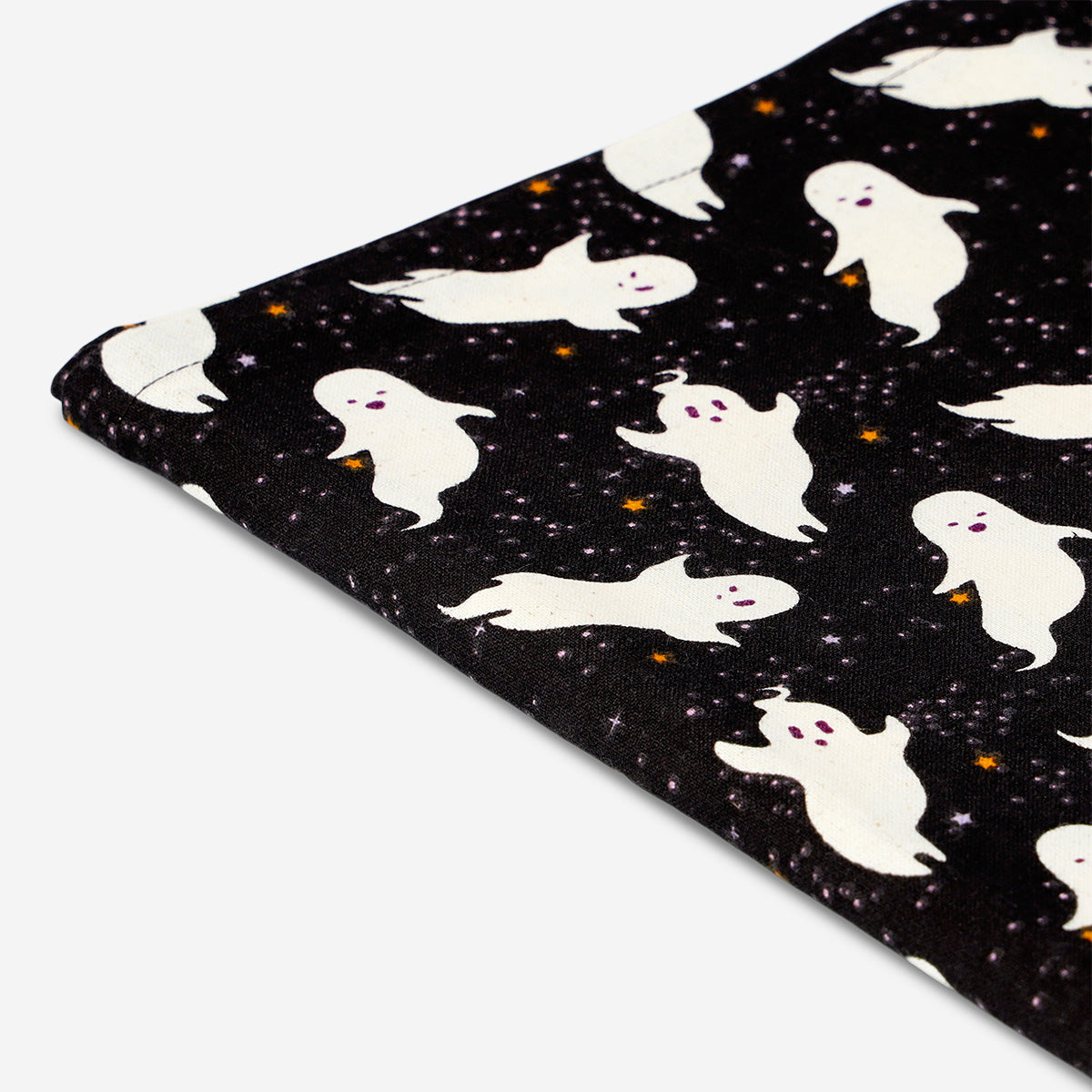 Bu hayalet desenli masa örtüsü ile Halloween havasını sofrana taşı! 140 x 220 cm ölçülerindeki siyah pamuk masa örtüsü, eğlenceli ve ürkütücü bir atmosfer yaratmak için harika bir seçim.
