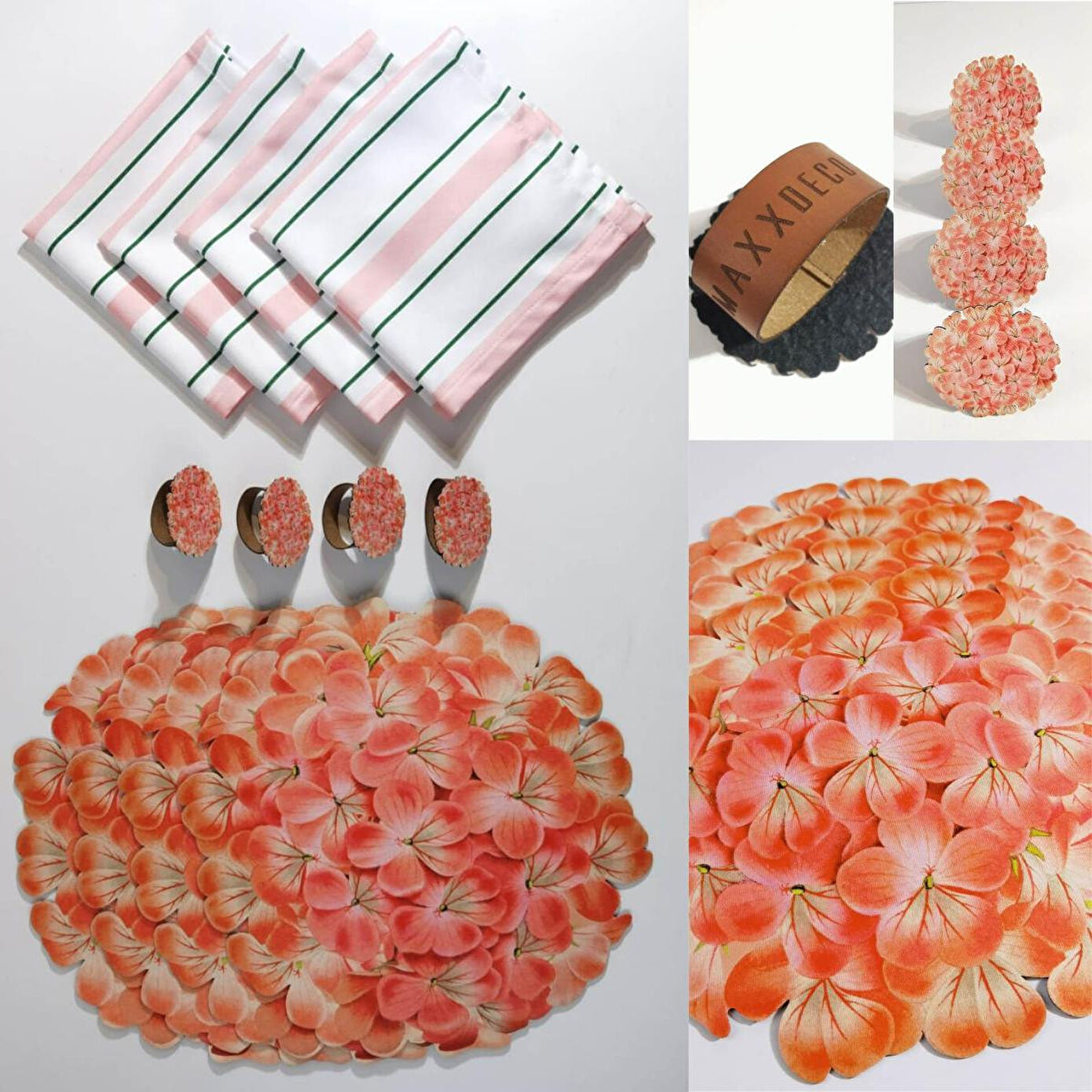 Maxxdeco farkı ile sizler için tasarladığımız setimiz 4 adet supla-amerikan servis, 4 adet peçete halkası, 4 adet servis peçetesi olacak şekilde toplam 12 parçadan oluşmaktadır. Leke tutmaz kumaş özelliğine sahiptir ve 30 derecede çamaşır makinesinde yıkanabilir. Tabak altlığı olarak kullandığımız suplalarımız ve peçete halkalarımıza desenin modeline göre özel kesim yapılmıştır.Supla 33x30 cm,Peçete halkası 7x6 cm,Peçete 40x40 cm ölçüsündedir.