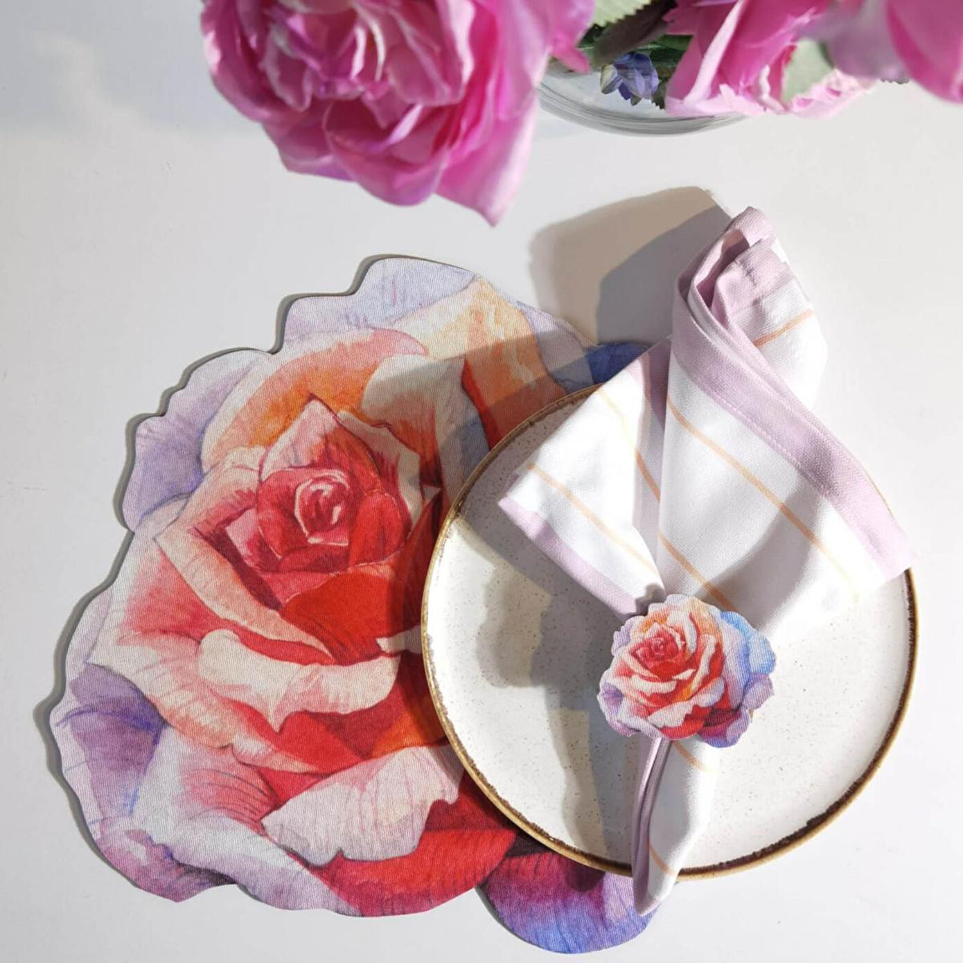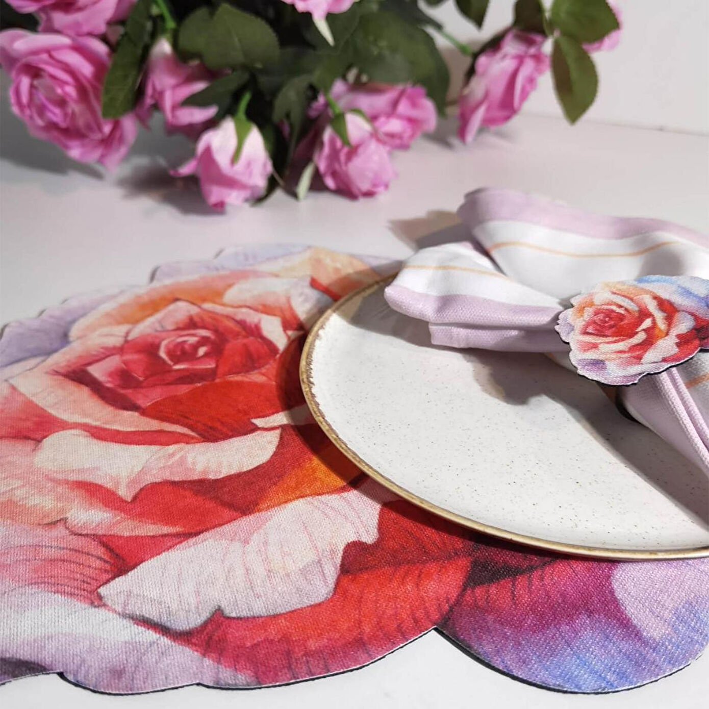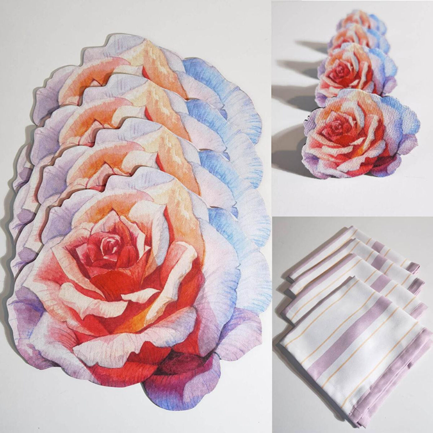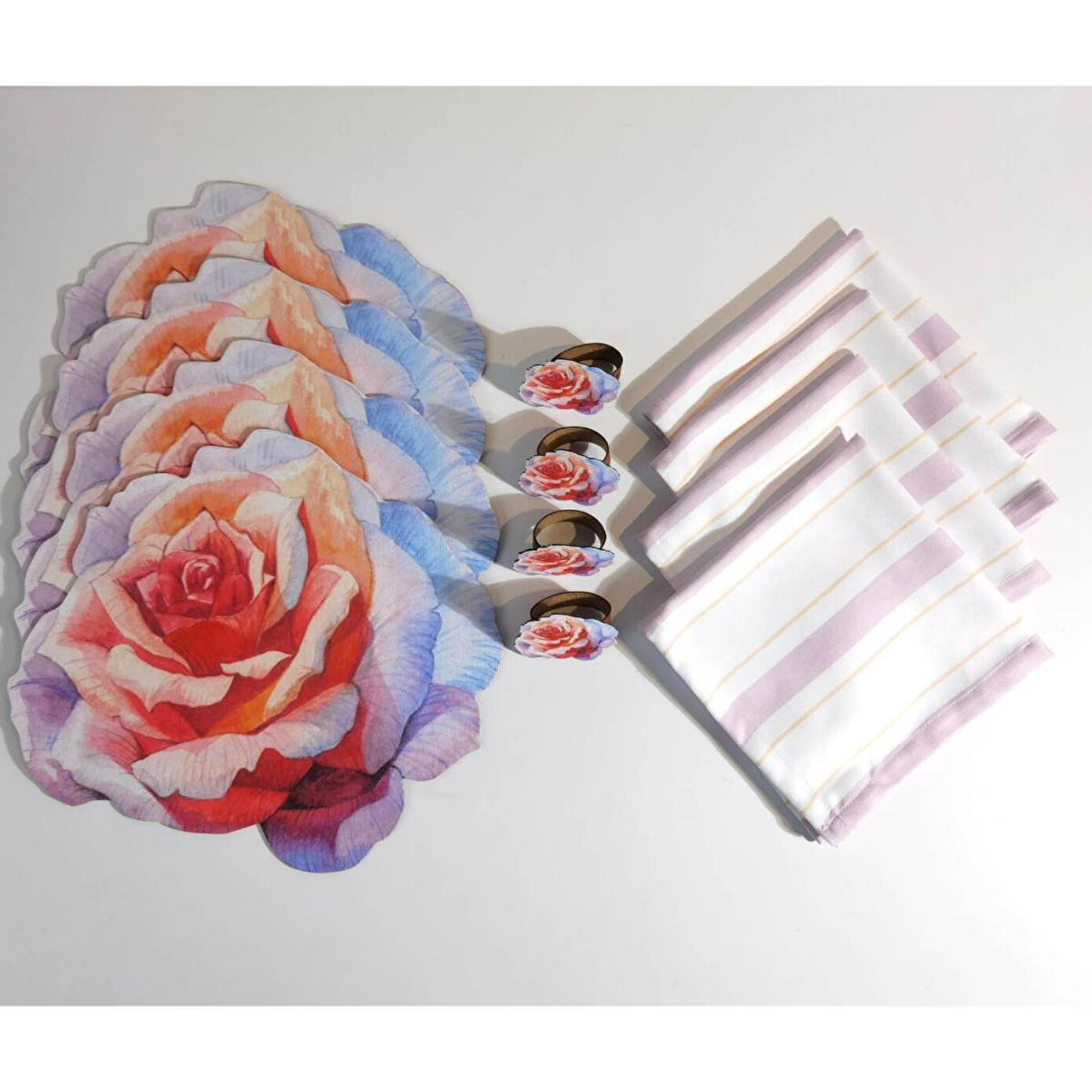 Maxxdeco farkı ile sizler için tasarladığımız setimiz 4 adet supla-amerikan servis, 4 adet peçete halkası, 4 adet servis peçetesi olacak şekilde toplam 12 parçadan oluşmaktadır. Leke tutmaz kumaş özelliğine sahiptir ve 30 derecede çamaşır makinesinde yıkanabilir. Tabak altlığı olarak kullandığımız suplalarımız ve peçete halkalarımıza desenin modeline göre özel kesim yapılmıştır.Supla 33x30 cm,Peçete halkası 7x6 cm,Peçete 40x40 cm ölçüsündedir.