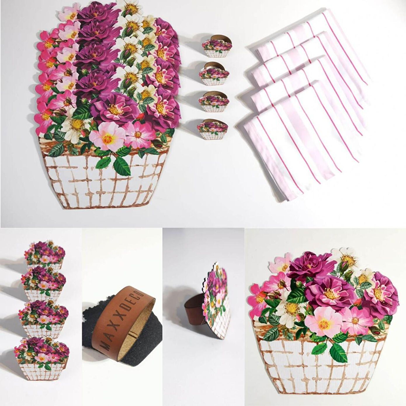 Maxxdeco farkı ile sizler için tasarladığımız setimiz 4 adet supla-amerikan servis, 4 adet peçete halkası, 4 adet servis peçetesi olacak şekilde toplam 12 parçadan oluşmaktadır. Leke tutmaz kumaş özelliğine sahiptir ve 30 derecede çamaşır makinesinde yıkanabilir. Tabak altlığı olarak kullandığımız suplalarımız ve peçete halkalarımıza desenin modeline göre özel kesim yapılmıştır.Supla 33x30 cm,Peçete halkası 7x6 cm,Peçete 40x40 cm ölçüsündedir.