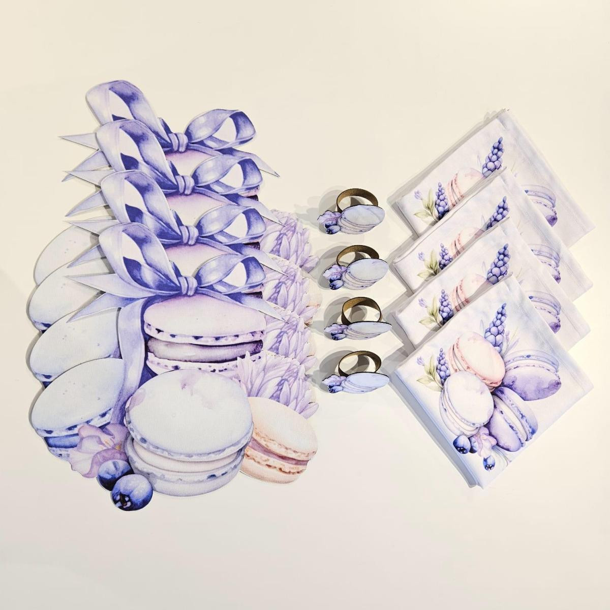 Maxxdeco farkı ile sizler için tasarladığımız setimiz 4 adet supla-amerikan servis, 4 adet peçete halkası, 4 adet servis peçetesi olacak şekilde toplam 12 parçadan oluşmaktadır. Leke tutmaz kumaş özelliğine sahiptir ve 30 derecede çamaşır makinesinde yıkanabilir. Tabak altlığı olarak kullandığımız suplalarımız ve peçete halkalarımıza desenin modeline göre özel kesim yapılmıştır.Supla 33x30 cm,Peçete halkası 7x6 cm,Peçete 40x40 cm ölçüsündedir.