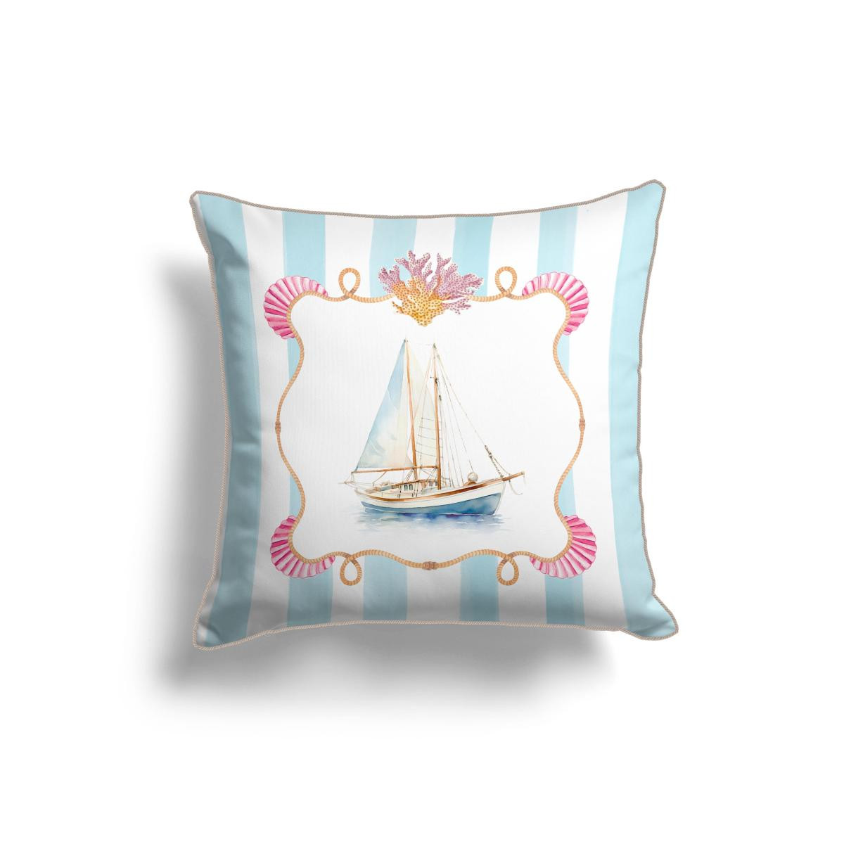 Kumaşımız özel bir işlem görmüş polyesterdir. Leke Tutmaz ve 30 derecede yıkanabilir. Ürünümüz çift taraf baskılıdır. Gizli fermuar kullanılmıştır. Kırlentimizde özel hazırlanmış halat biye detayı kullanılmıştır.