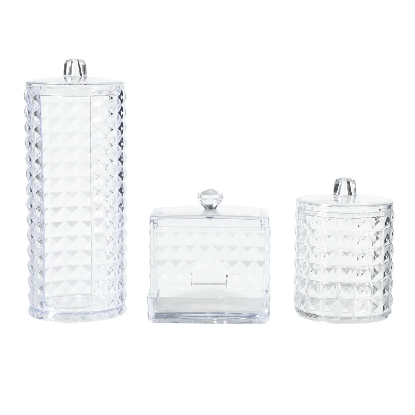 Banyonuzda düzen sağlarken estetik bir görünüm elde etmek istiyorsanız 3'lü Pamukluk Seti tam size göre. Banyo düzeninizde ihtiyacınız olan bütün detayları düşünen ve tasarımıyla her ortama uyum sağlayan pamukluk seti fonksiyonelliği ve şıklığı bir arada yaşayın.%100 Plastik