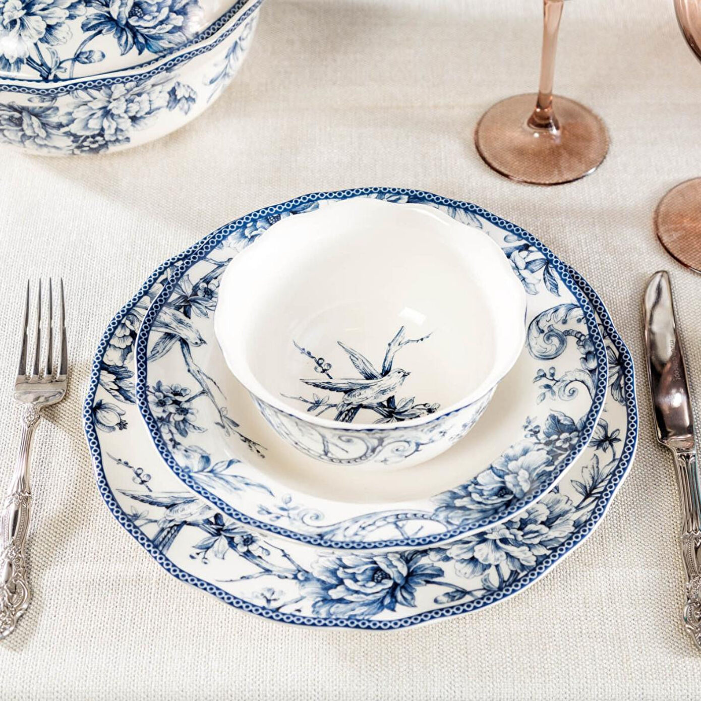 Rönesans desenlerinden ilham alan özel tasarım adelaide serisi mavi ve beyazın estetik uyumuyla her dönemin vazgeçilmezleri arasında.Mudo Concept'in klasikleşmiş ürünlerinden olan porselen Adelaide sofra serisi sofralarınızda şık sunumlar yaratmaya devam ediyor. Mavi beyazın asil birleşimi, çicek ve kuş desenleriyle sofralarınıza romantik bir esintisini katacak. Serinizi Adelaide tatlı tabağı, servis tabağı, kase ve fincanları ile tamamlayabilirsiniz. Bulaşık makinesi ve mikroldalga fırın kullanımına uygundur.