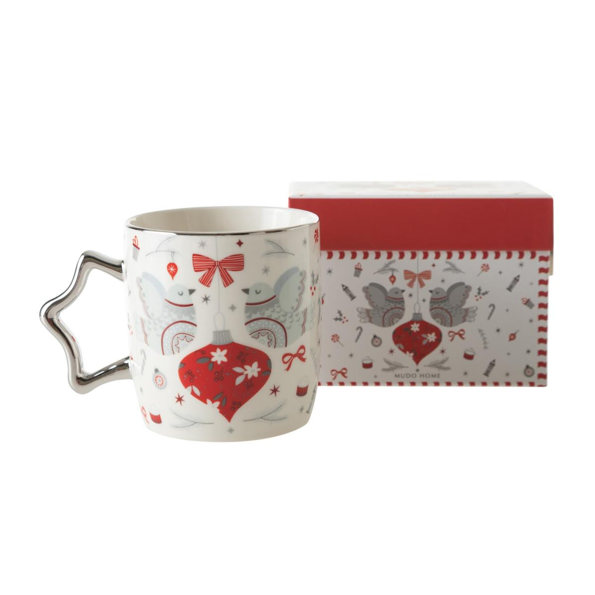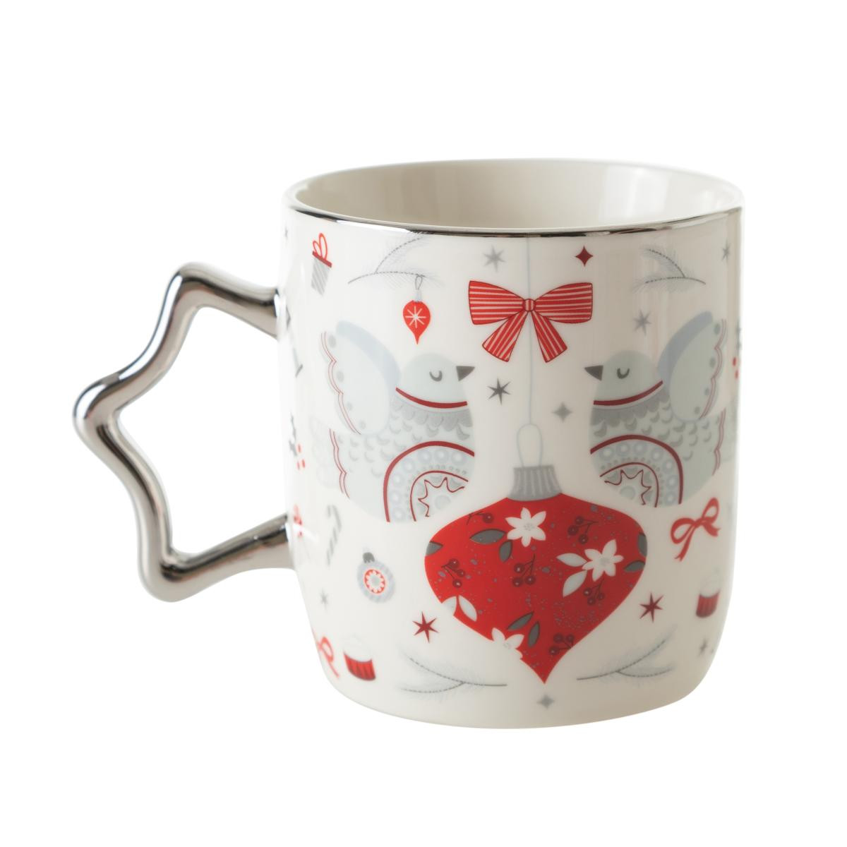 Parlak gümüş rengi özel yıldız formlu kulbu ve eğlenceli yılbaşı desenleriyle bu kupalar hem size hem çevrenize şık bir hediye alternatifi olacak. Özel tasarım müzikli hediye kutusuyla beraber set olan bu ürün içinizi ısıtacak. Porselen yapısıyla dayanıklı ve idealdir. Hem sıcak hem soğuk içecekleriniz için tercih edebileceğiniz kupanın desenleri ve tasarımı her yudumda keyfinizi ikiye katlar. Yılbaşı teması ile süslenmiş kutusu, kurmalı müzik mekanizması sayesinde; klasik yılbaşı müziği çalarak sevdiklerinize yılbaşı ruhu yaşatmak için ideal bir hediye olabilir.