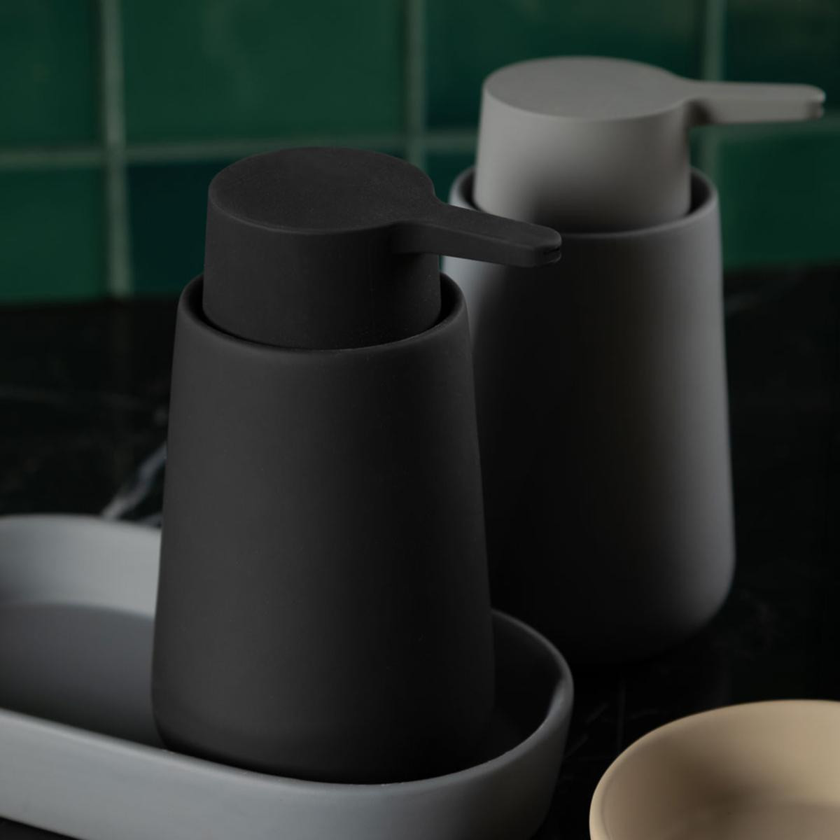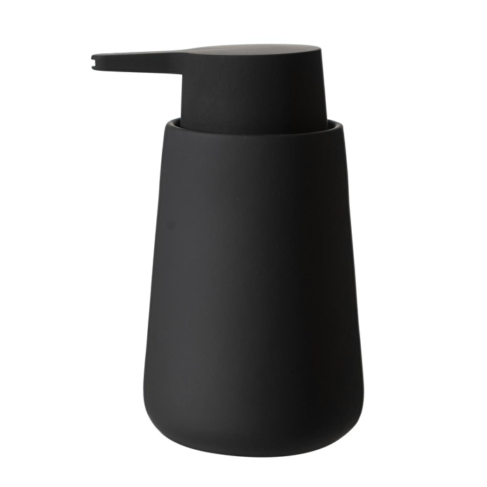 Ürünün dikkat çeken konik formu ve düz hatlı pompalama mekanizması, hem estetik hem de pratik bir kullanım deneyimi sağlar. Pürüzsüz ve mat dokusu, modern banyo dekorasyonlarında öne çıkan siyah rengin sade bir yorumunu sunar. Minimalist tasarımı sayesinde, banyo tezgahlarında düzenli bir alan yaratılmasına yardımcı olur.