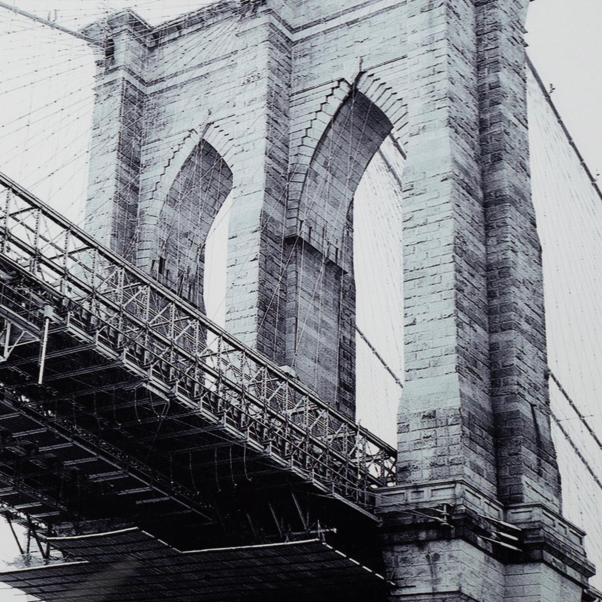 Brooklyn Köprüsü'nün ikonik mimarisini yansıtan bu çerçeveli cam tablo, şehirli ve modern dekorasyonlara estetik bir katkı sunar. Siyah beyaz tonlamasıyla köprünün detaylarını öne çıkaran tasarım, mekanlara sakin ve zamansız bir atmosfer kazandırır. Parlak cam yüzeyi, ışığı yansıtarak ferah bir etki oluştururken, mat dokulu siyah çerçeve tabloya minimalist bir görünüm kazandırır.