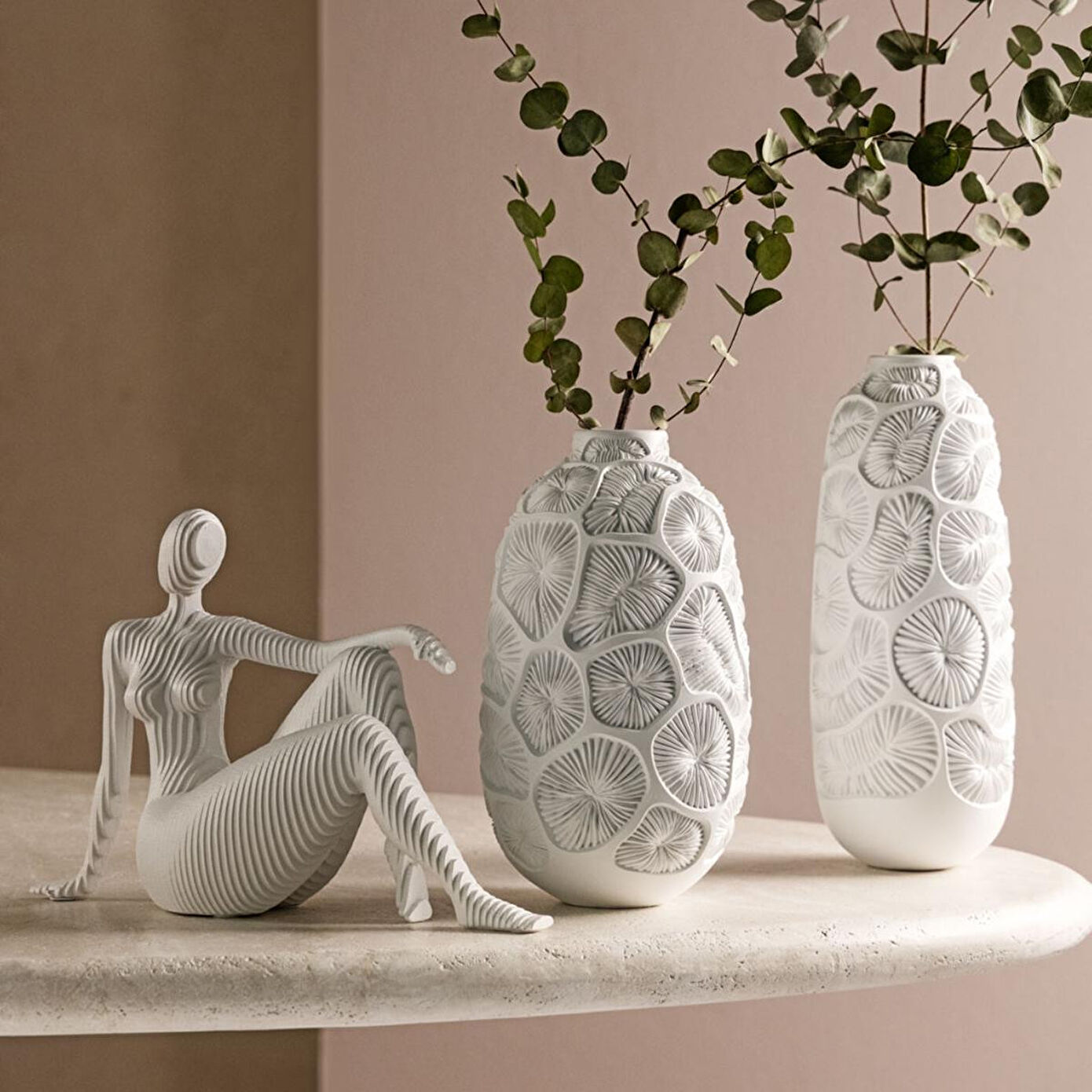 Formundaki özgün detaylarla modern dekorasyonlara ilham verir. Hafifliği ve biçimsel dengesi sayesinde farklı alanlarda rahatlıkla sergilenebilir. Çağdaş ve yalın bir dokunuş arayanlar için iyi bir tamamlayıcıdır.%45 Reçine, %55 Taş Tozu