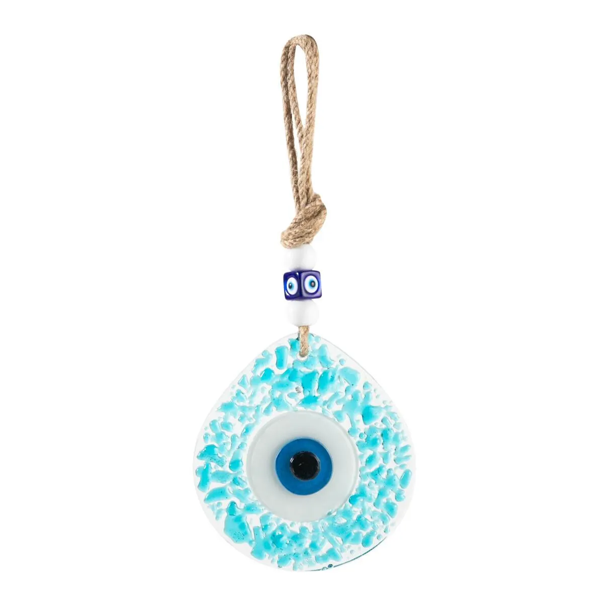El işçiliğini yansıtan detayları ve zarif malzeme birleşimiyle bu nazarlık, renkli boncukları, dokulu yüzeyi ve özgün tasarımıyla yaşam alanlarına pozitif enerji ve estetik bir duruş kazandırır. Dekorasyonda kültürel dokuları sevenlerin dikkatini çekecek olan aksesuar, bulunduğu ortamın enerjisini etkileyecek.%80 Cam, %20 İp