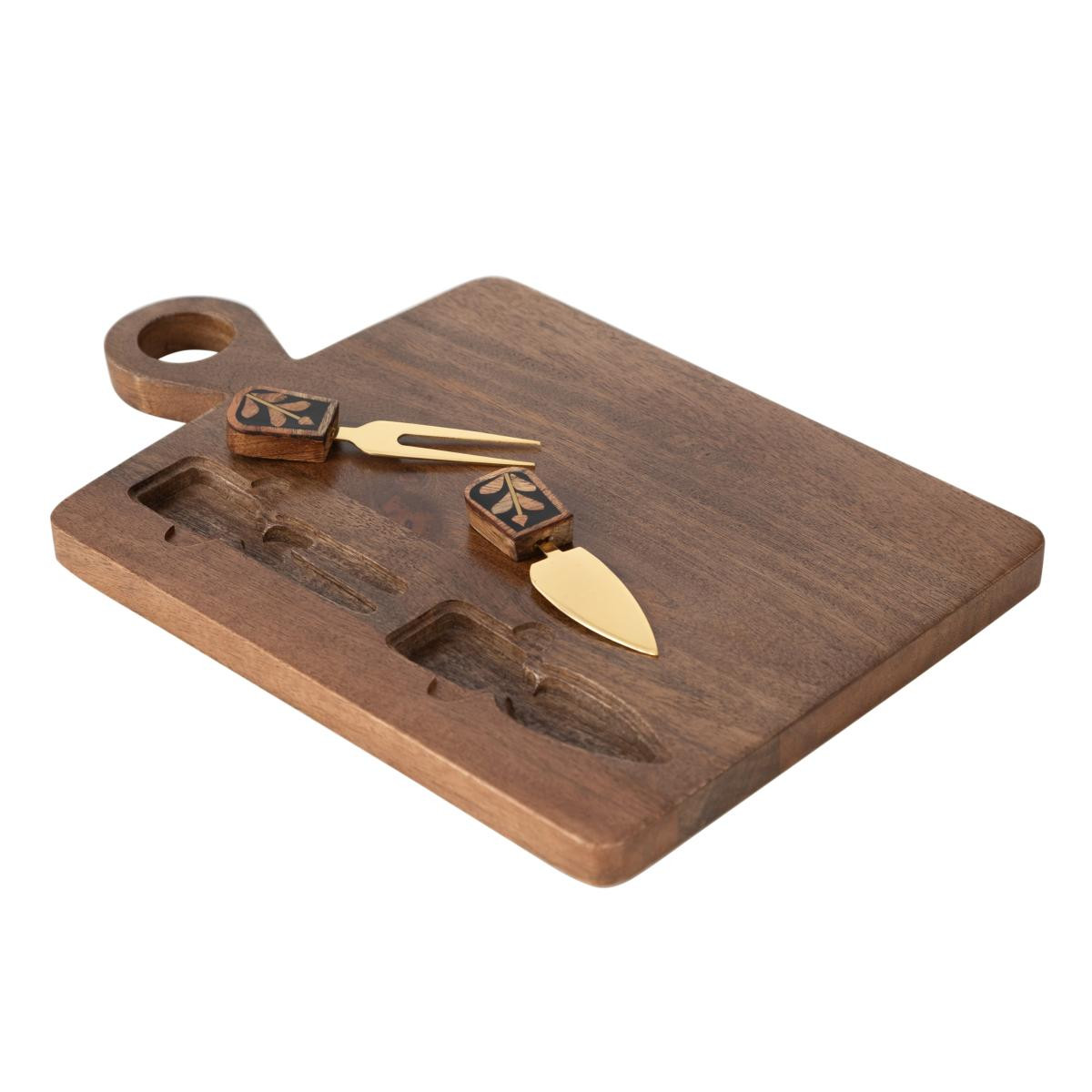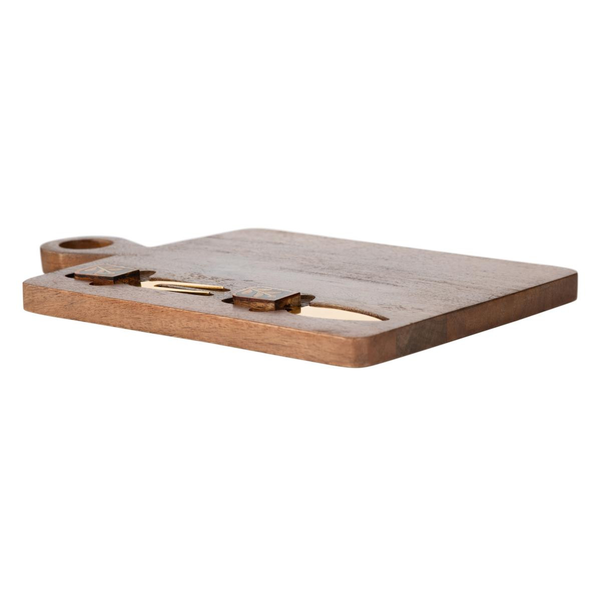 Orissa Mango Peynir Sunum Seti ile sofralarınızda egzotik bir rüzgar estirin! Mango ağacının dayanıklılığını ve doğal dokusunu, siyahın modern estetiğiyle bir araya getiren bu ürün; sunumlarınızın gözalıcı parçası olacak. Mango ağacı ahşabının kendine has damarlı yapısı ve yüksek direnci ile şık tasarım bir araya getirilerek oluşturulan Orissa serisinin diğer ürünleri ile bir araya getirerek, sofralarınıza derinlik ve şıklık katabilirsiniz.%40 Mango, %20 Metal, %40 Resin