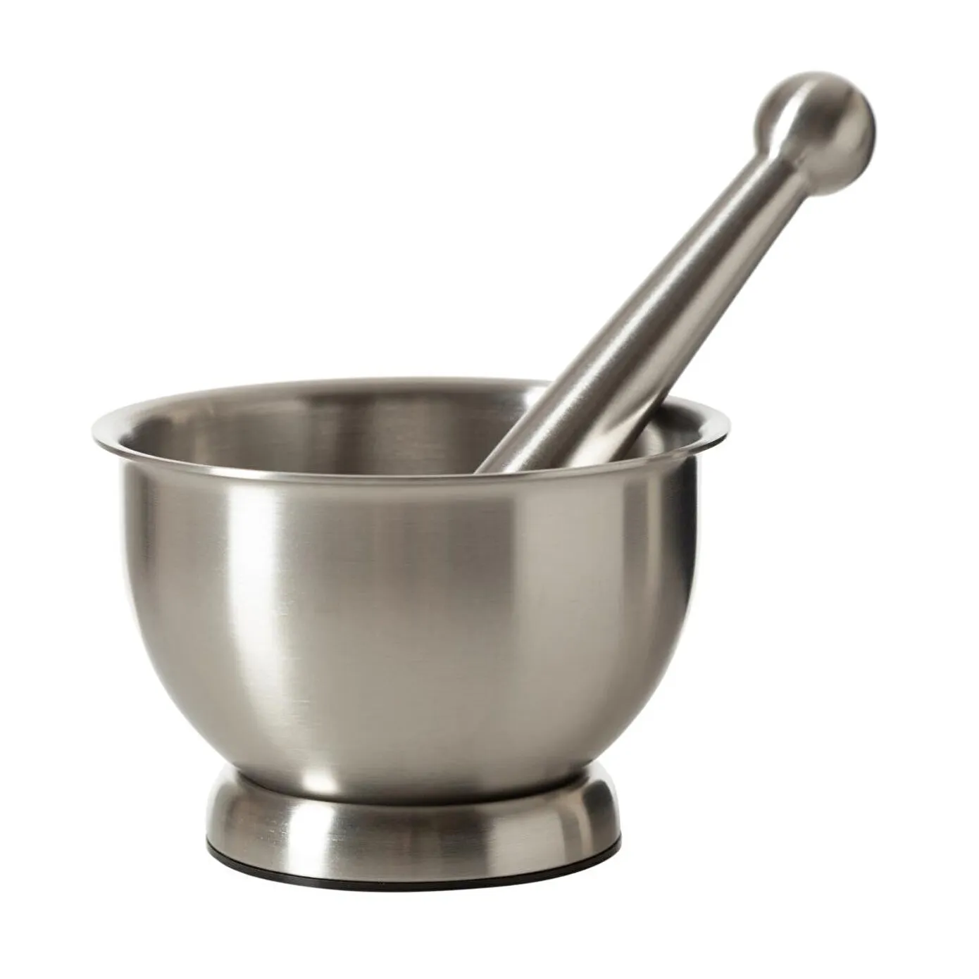 Dayanıklı paslanmaz çelikten üretilen Havan, baharat, ot ve soslarınızı ezmek için ideal bir yardımcıdır. Şık ve modern tasarımı mutfaklarda estetik bir detay sunarken, sağlam yapısı uzun ömürlü kullanım sağlar. Hem fonksiyonel hem de pratik bir mutfak aracı arayanlar için mükemmel bir seçim.