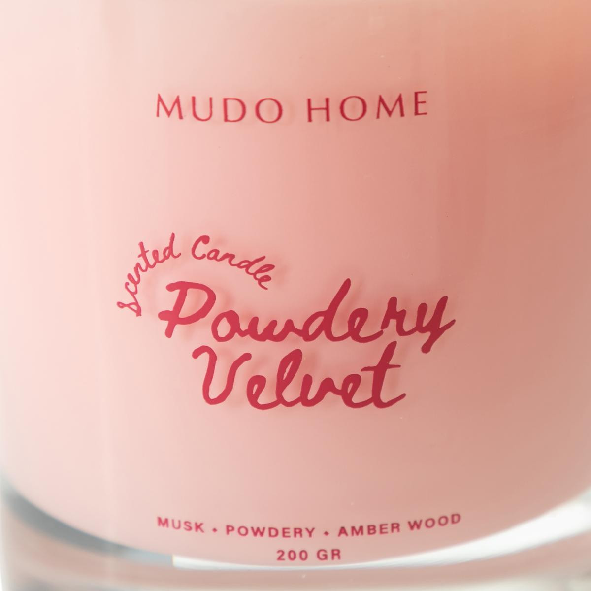 Üzerindeki "Powdery Velvet" yazılı etiket ve pürüzsüz cam yüzeyi, ürüne modern bir detay kazandırır. Hem kendiniz için huzurlu bir ortam yaratmak hem de sevdiklerinize hediye etmek için ideal bir tercihtir. Bu pembe mum, ev dekorasyonunuzu tamamlayan sakin ve şık bir detay sunar.