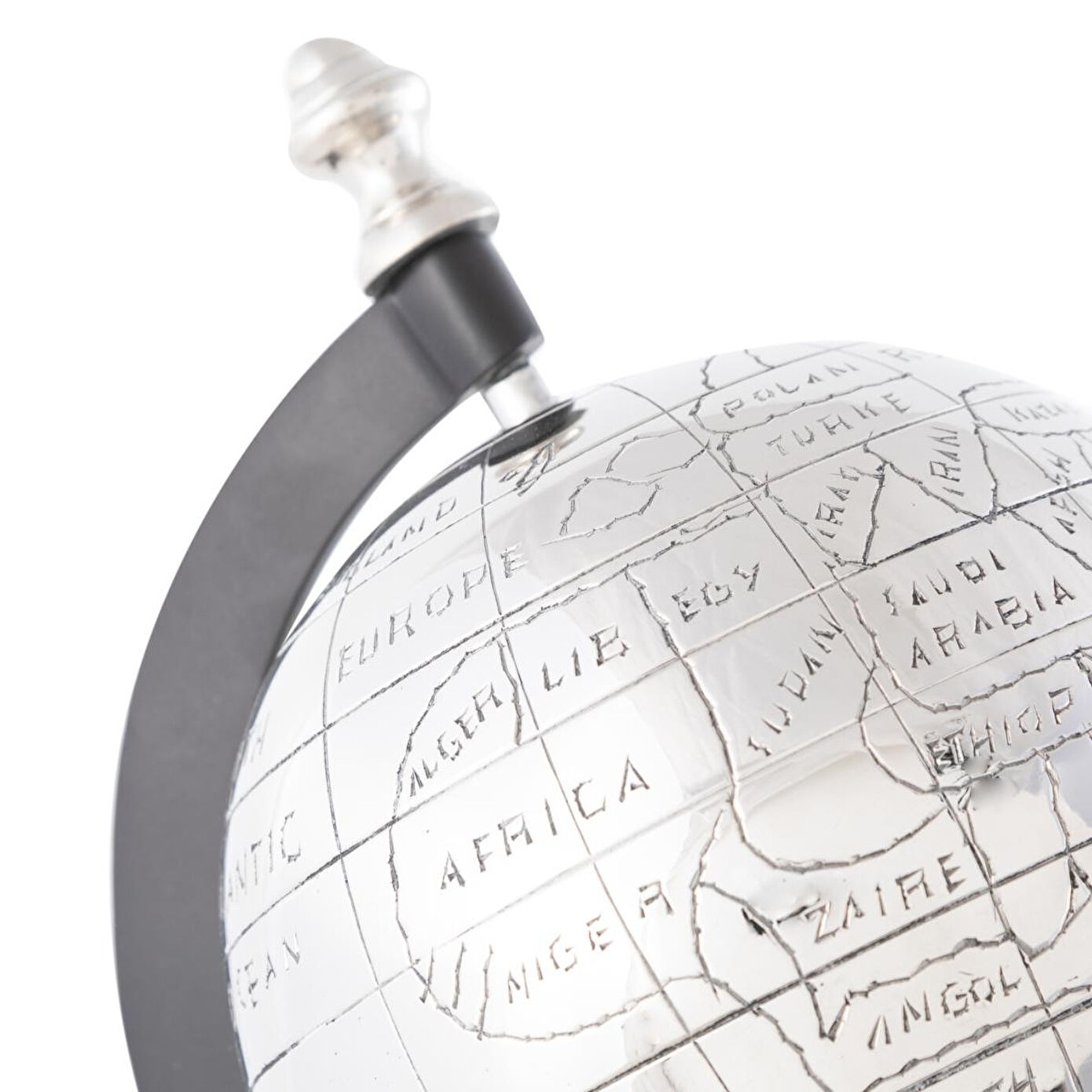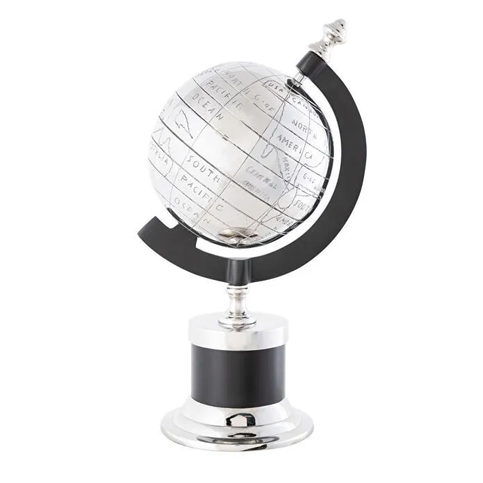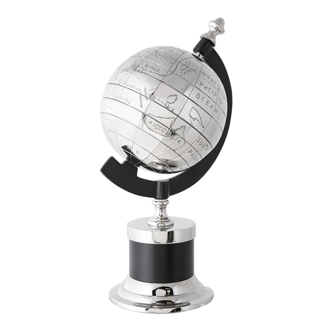 Parlak yüzeyi ışığı yansıtarak bulunduğu ortama hareket katan bu dünya küresi formundaki biblo, modern bir tasarım anlayışı sunar. Küre üzerindeki detaylar, tasarıma farklı bir görünüm kazandırır. Ayak detayı üzerinde dengeli bir duruş sergileyen küre, ofis masalarından kitaplıklara, yan sehpalardan vitrinlere kadar pek çok alanda dekoratif bir odak noktası olarak kullanılabilir. Minimalist ve modern dekorasyon tarzları için tamamlayıcı bir parçadır.