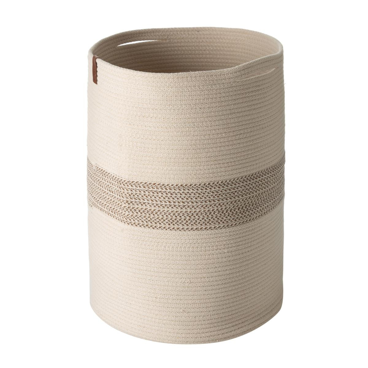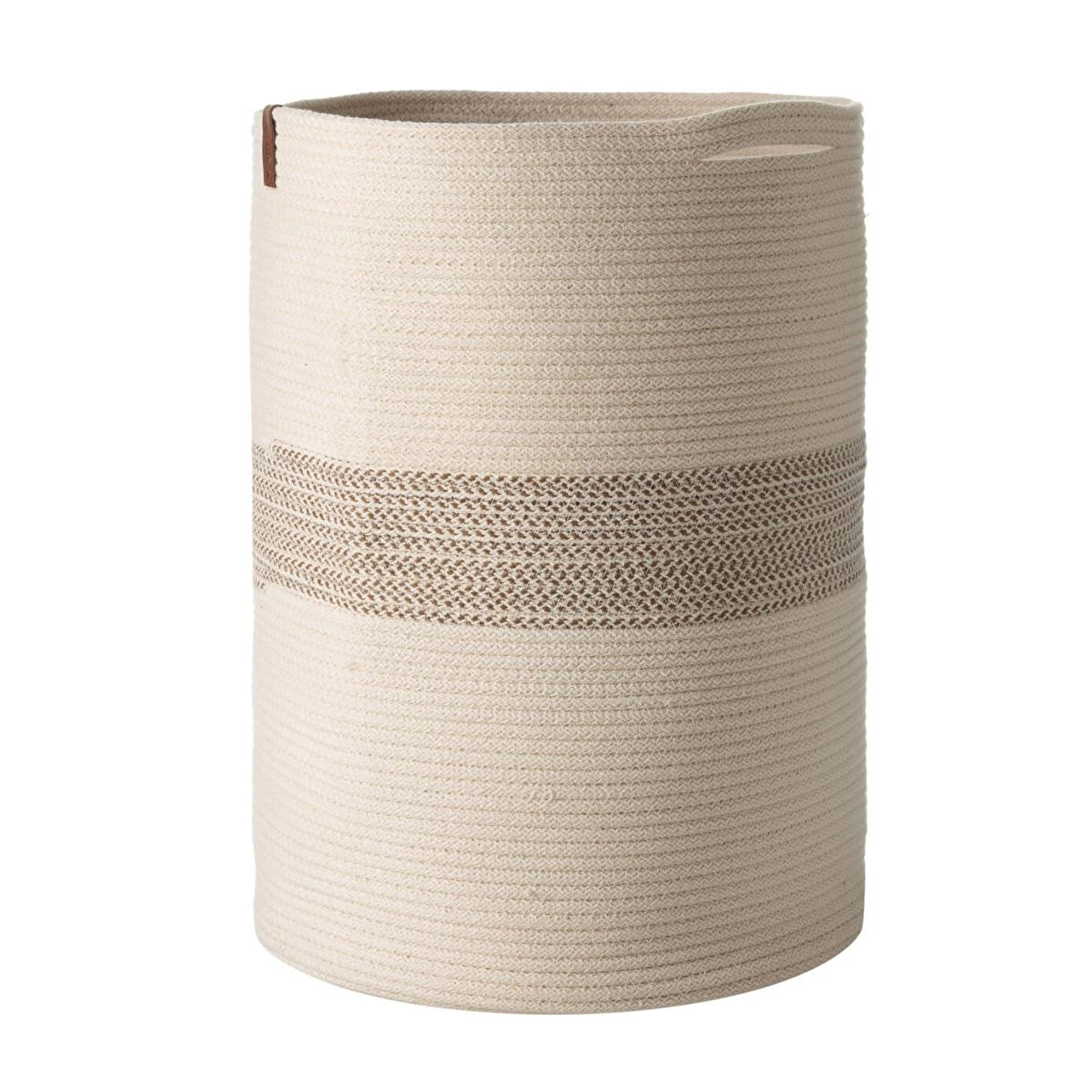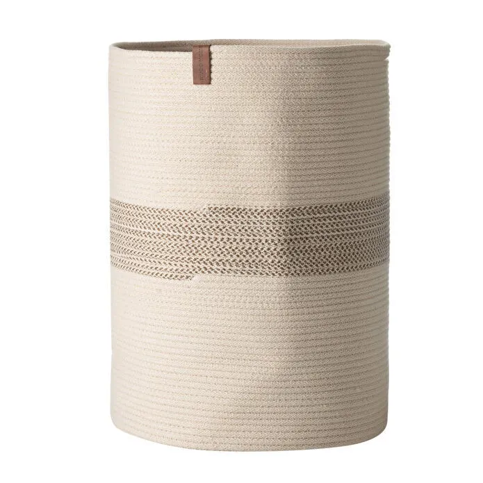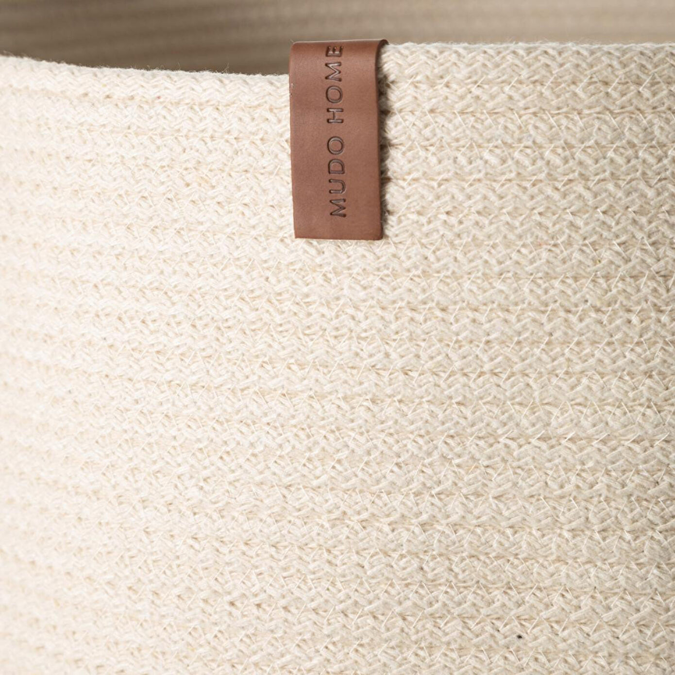 Çamaşır sepetinin öne çıkan özelliklerinden biri, örme iplik dokusunun sunduğu yumuşak ve sıcak hissiyattır. Bu dokusal detay, ürüne doğal bir görünüm kazandırırken kullanım sırasında konfor sağlar. Yuvarlak formu sayesinde sepet, evin farklı köşelerinde fonksiyonel ve dekoratif olarak rahatlıkla kullanılabilir. Bej-ekru renk kombinasyonu ferah bir etki yaratırken, kahverengi deri etiket ise ürüne zarif bir detay ekler.