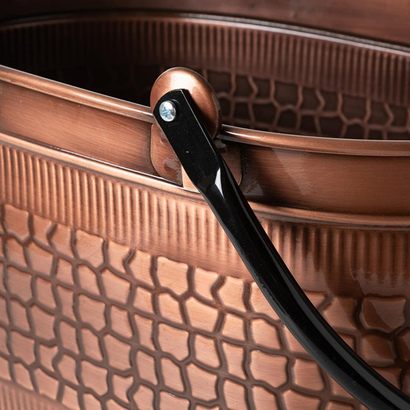 Vintage Bakır tekerlekli odun kovası, hareketli yapısı ve hem kullanışlı hem de şık tasarımıyla pratik bir kullanım sunar. Bakır tonlarıyla şöminenize nostaljik ve sıcak bir atmosfer getirir.%100 Galvaniz