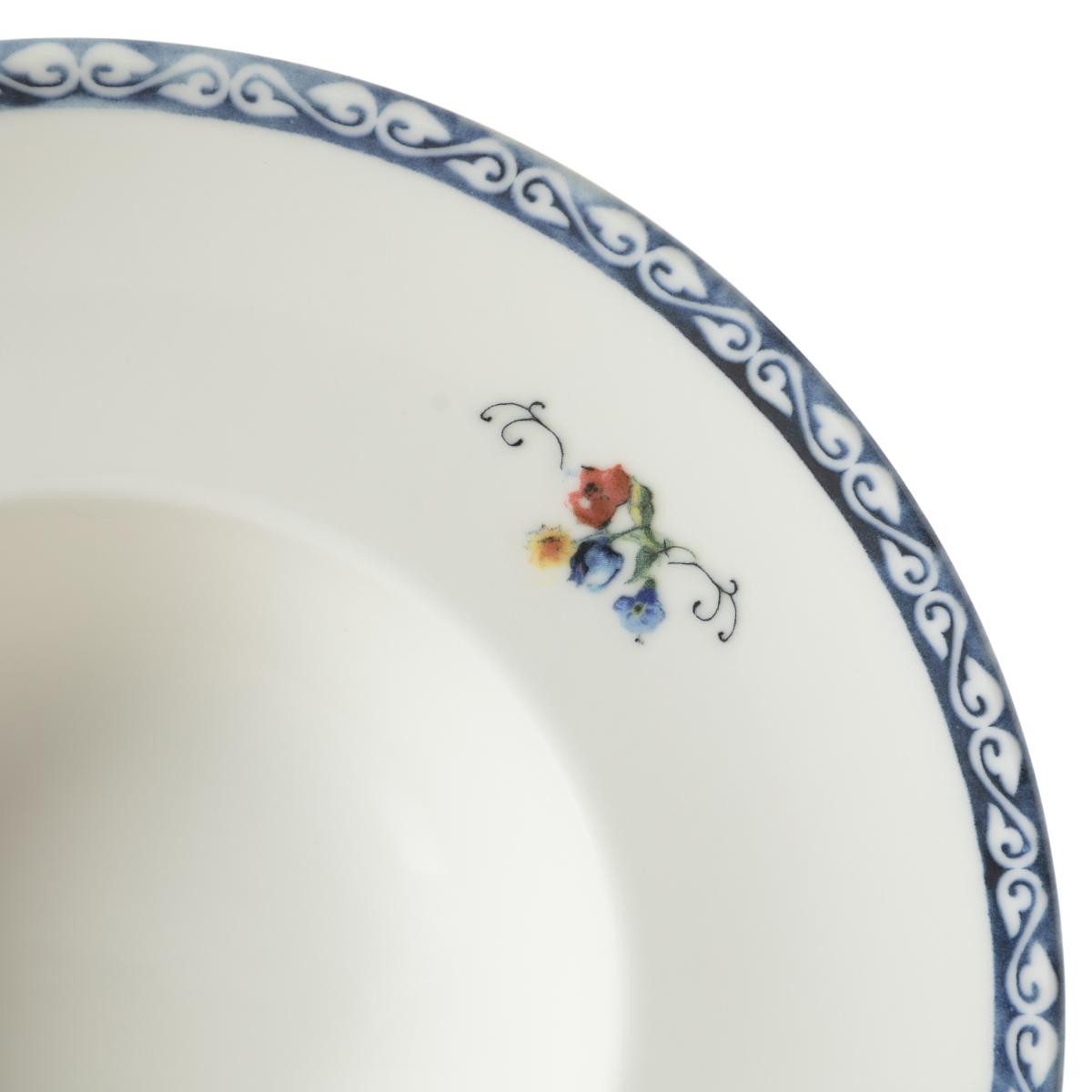 Tabağın pürüzsüz yüzeyi, üzerindeki zarif çiçek motiflerini ve kenarlarını çevreleyen ritmik dalgalı deseni öne çıkarır. Bu detaylar, tabağa hem nostaljik hem de canlı bir karakter kazandırır. Klasik yuvarlak formu, onu her türlü sofra düzeni için çok yönlü ve uyumlu bir parça haline getirir.