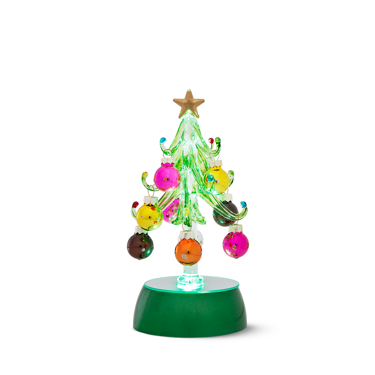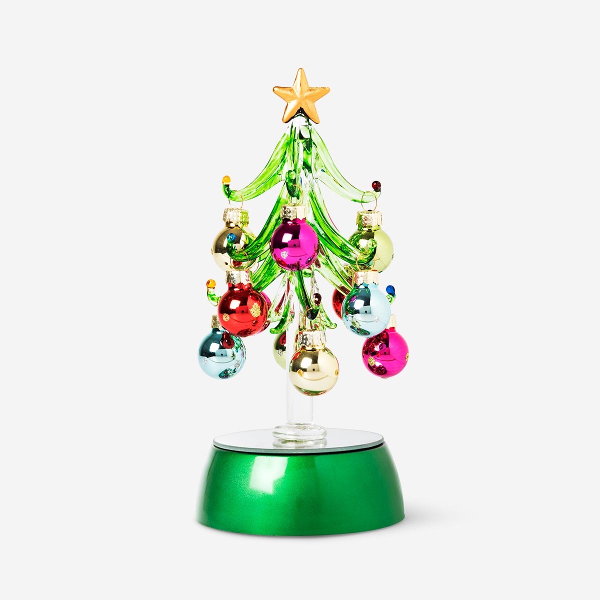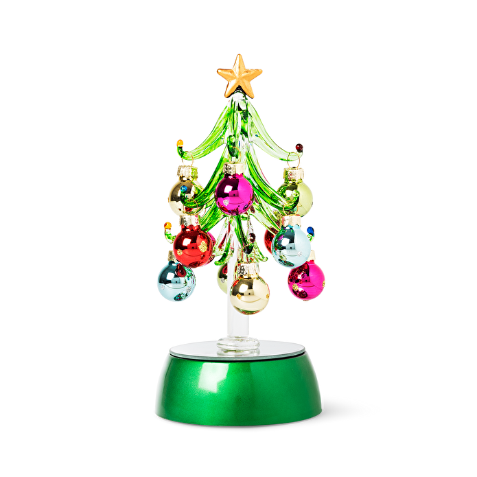 Renk değiştiren ışıklara sahip Noel ağacı. Yüksekliği 18.5 cm'dir. 3 adet AA pil ile çalışır.