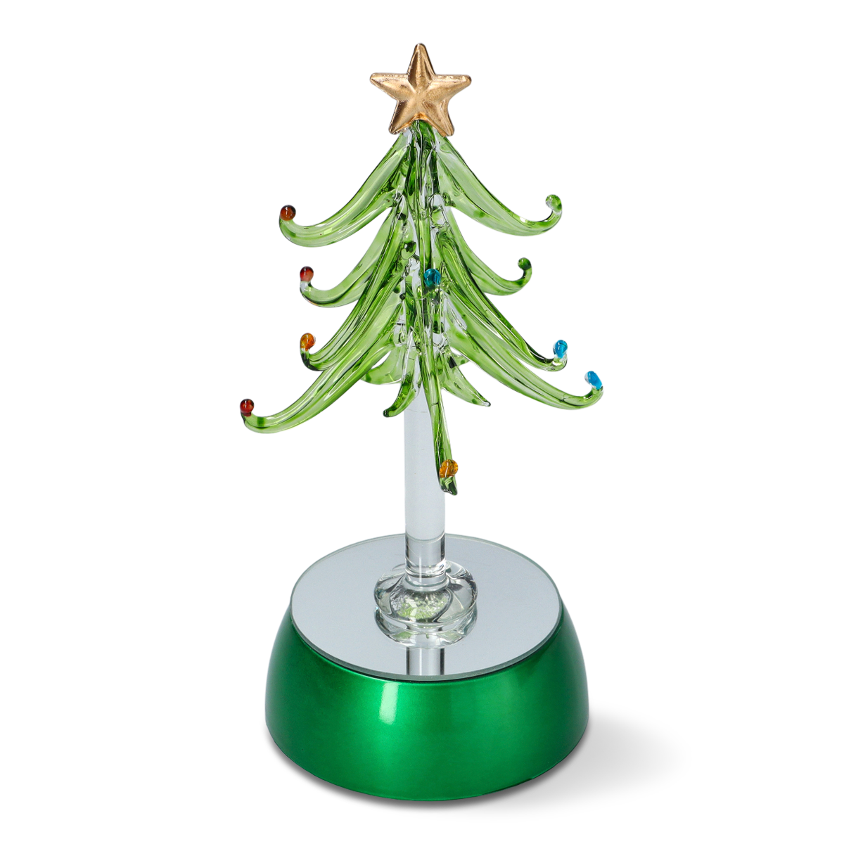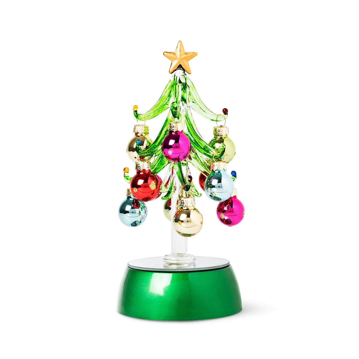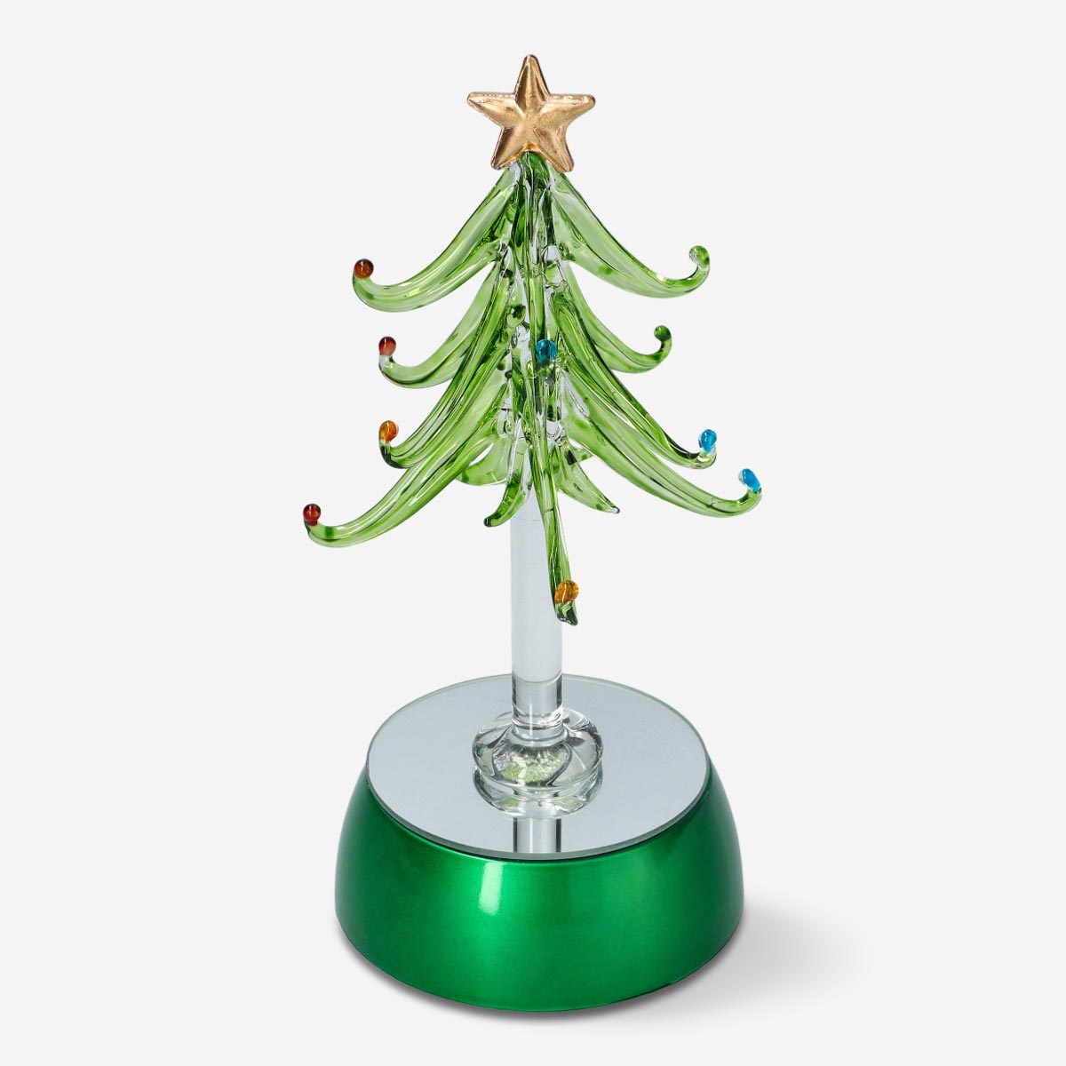 Renk değiştiren ışıklara sahip Noel ağacı. Yüksekliği 18.5 cm'dir. 3 adet AA pil ile çalışır.