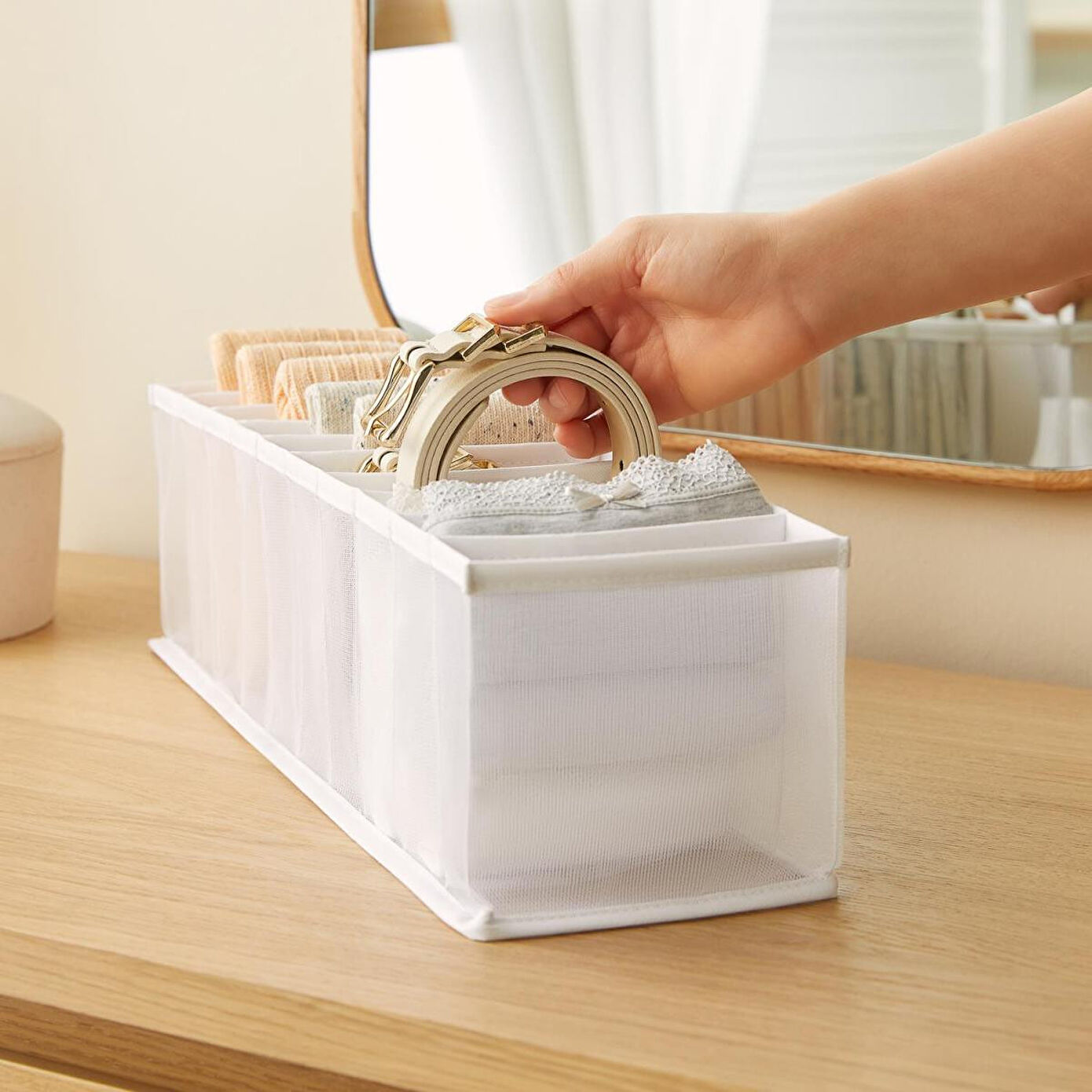 Çorap, takı, çamaşır, aksesuar gibi eşyaların düzenini sağlayan organizerler, çekmece içlerinin düzenini oluştururken üründe bulunan bölmeler sayesinde ihtiyaç duyulan eşyaların kolayca bulunmasına yardımcı olur.