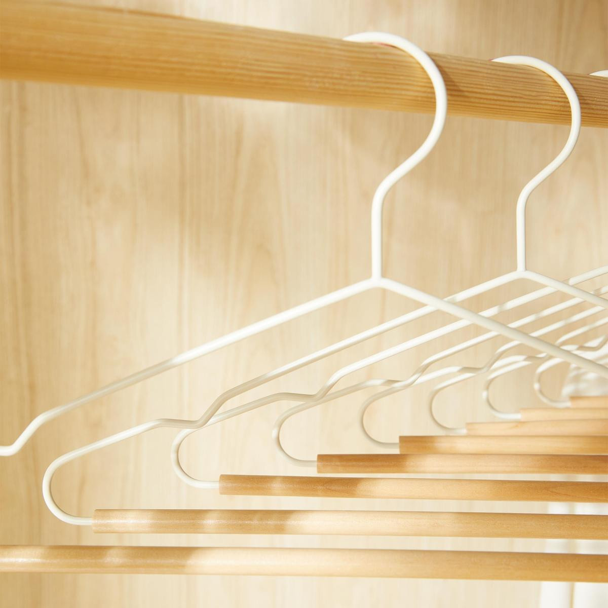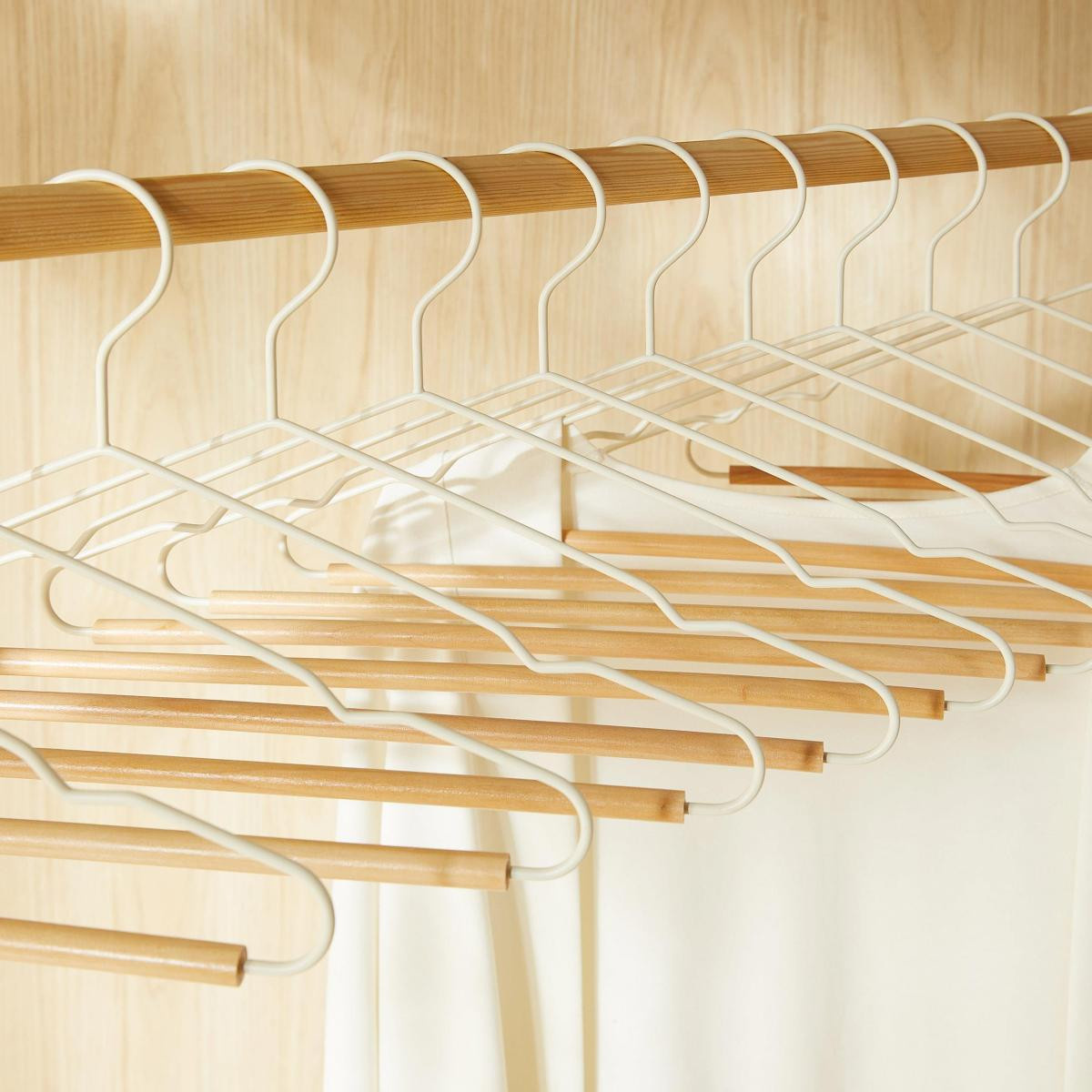 Ahşap destekli giysi askısı; pantolon, etek, gömlek ve benzeri birçok kıyafet için uygundur.