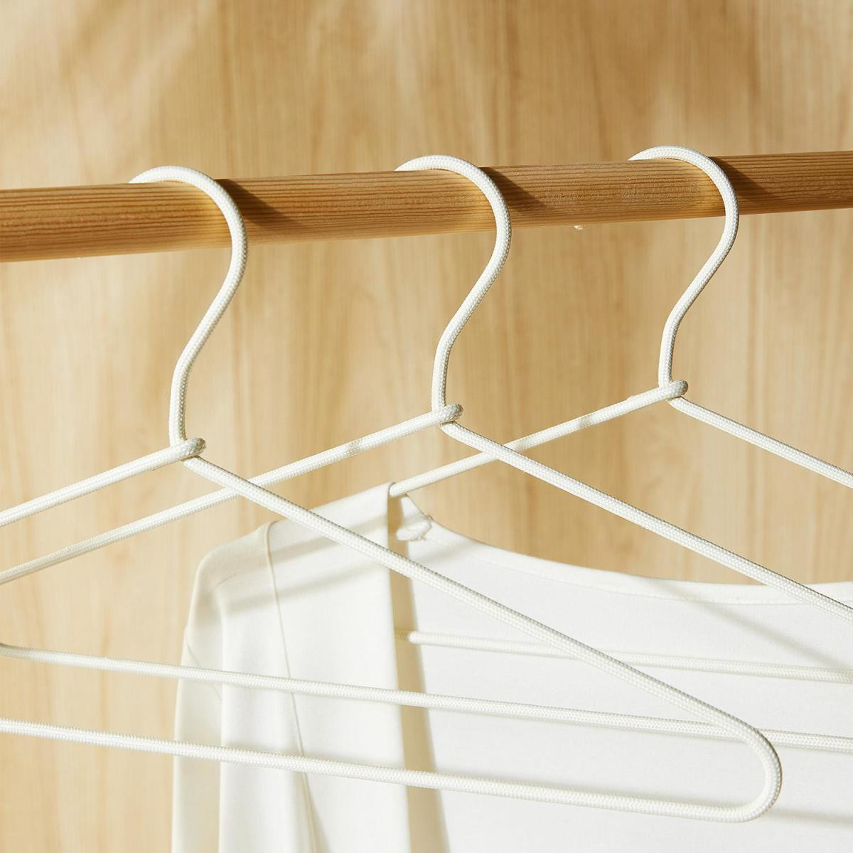 Kumaş kaplı metal kıyafet askıları, dolapları ve giysileri düzenli tutmak için mükemmel bir seçenektir.