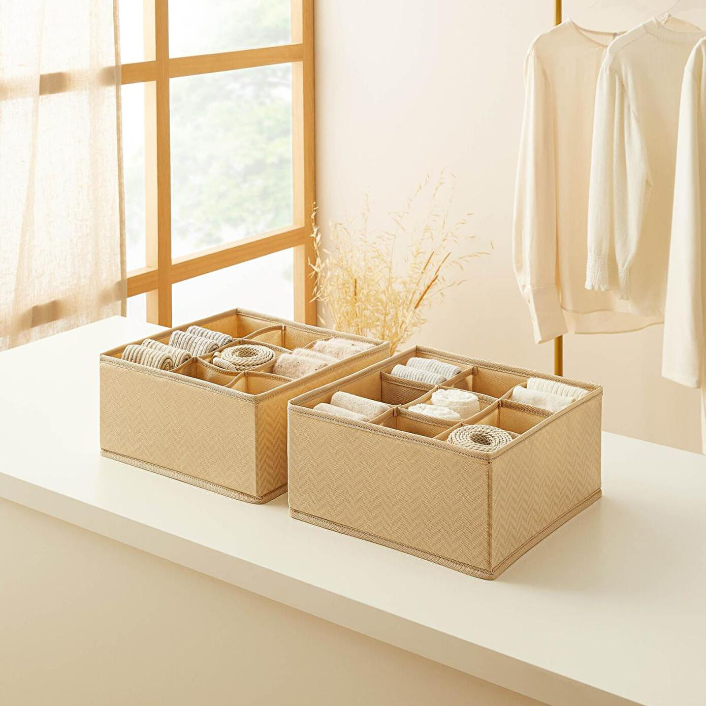 Ocean Home Textile 2'li 9 Bölmeli Petek Bej Balıksırtı Çekmece İçi Düzenleyici Kutu Set