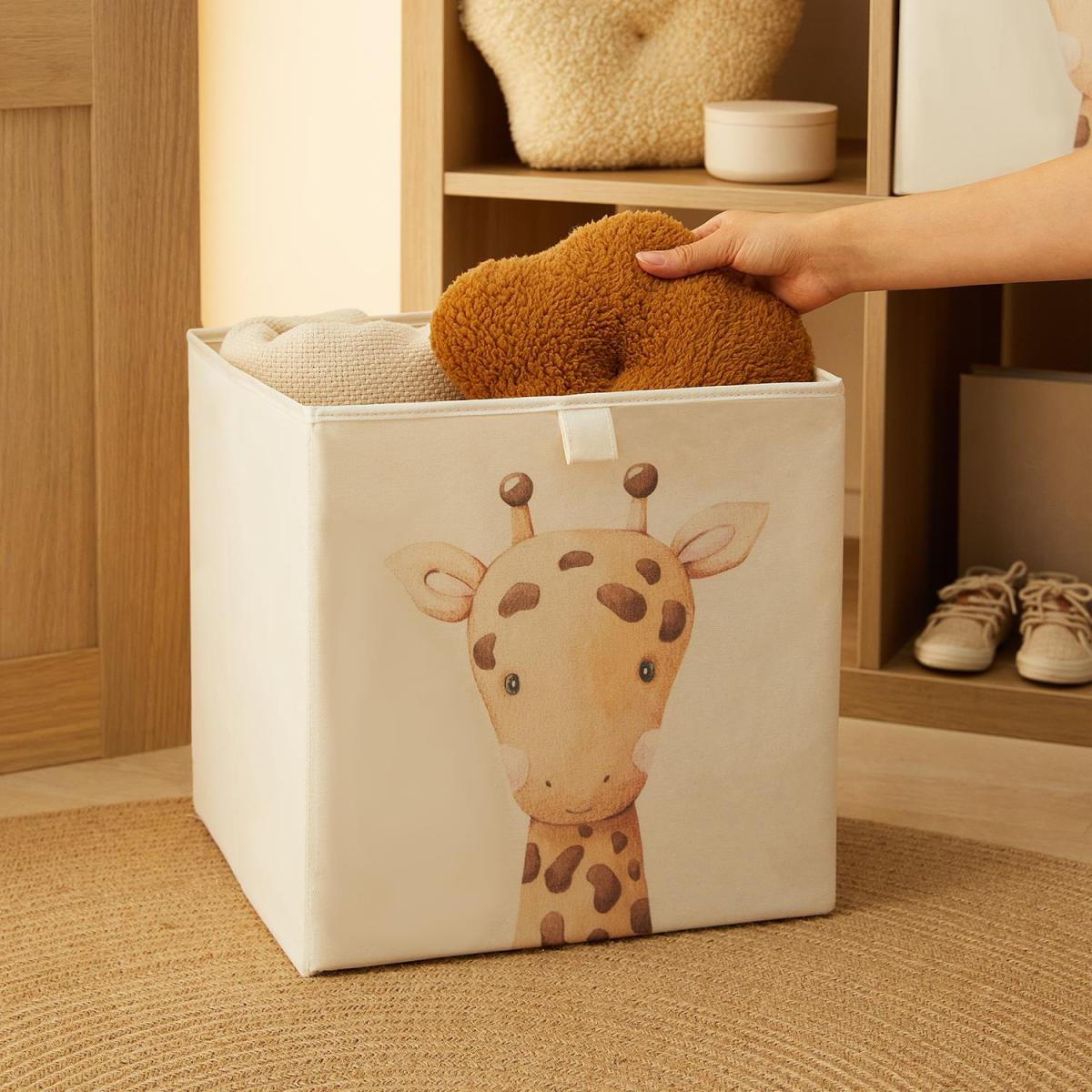 Sevimli hayvan baskılarıyla üretilen diğer sepetleri ve kutuları çocuk odanızı tamamlamak ve bir bütünlük sağlamak için tercih edebilirsiniz.