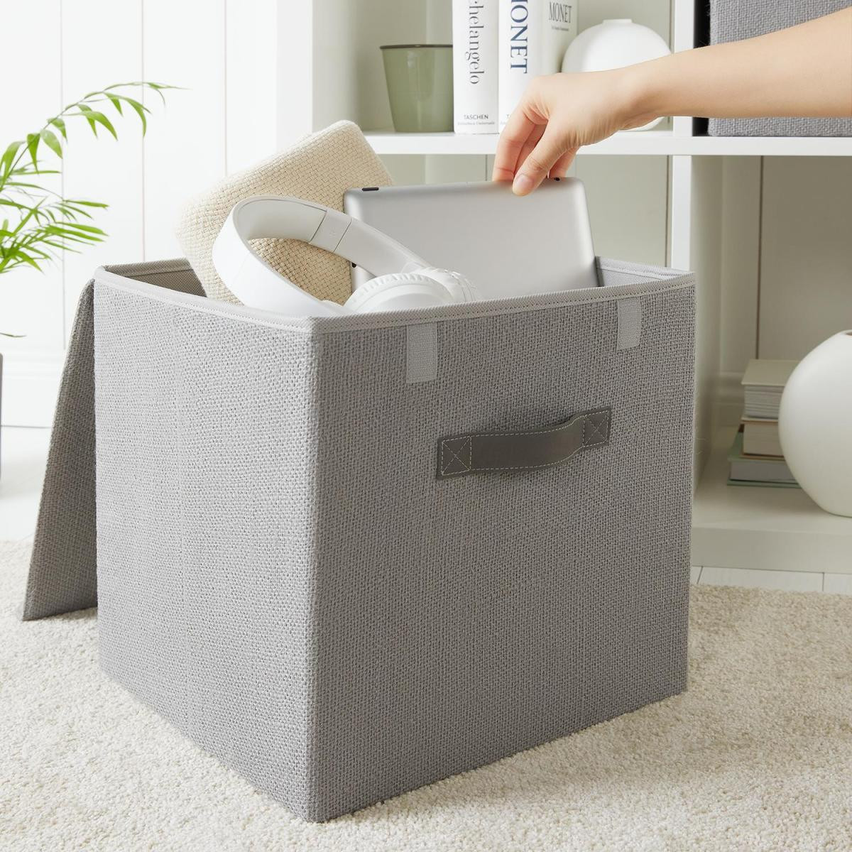 Ev ve ofiste, düzenli alan oluşturmanıza yardımcı olurken, aynı zamanda deri görünümlü kulp ve jüt kumaş yapısıyla bulunduğu ortama şıklık katar.