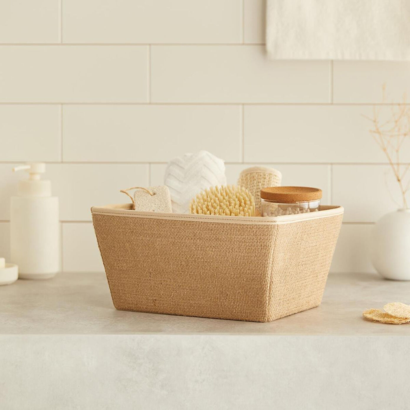 Jüt kumaştan üretilmiş kutu, düzenli alan oluşturmanıza yardımcı olurken farklı tasarımıyla bulunduğu ortama şıklık katar.