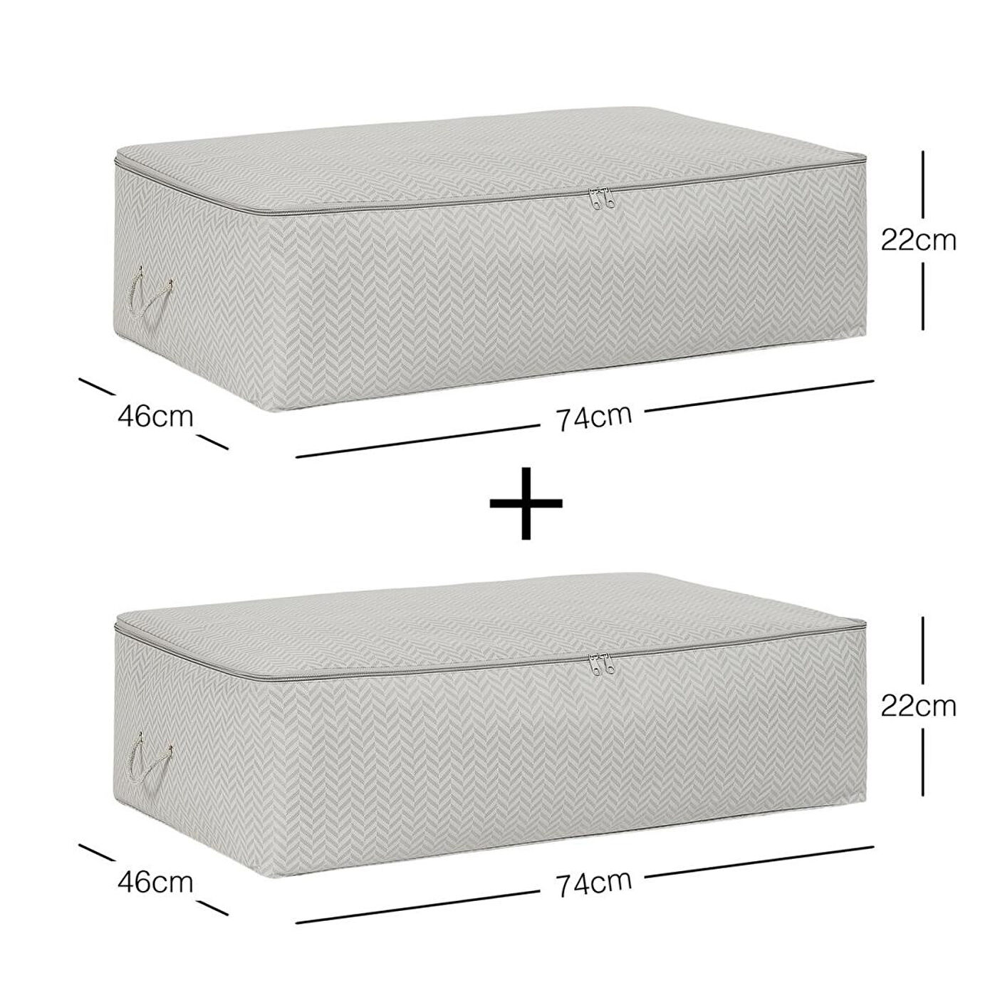 Ocean Home Textile 2'li Mega Boy Gri Balıksırtı Baza Altı Hurç Set 74 X 46 X 22 Cm
