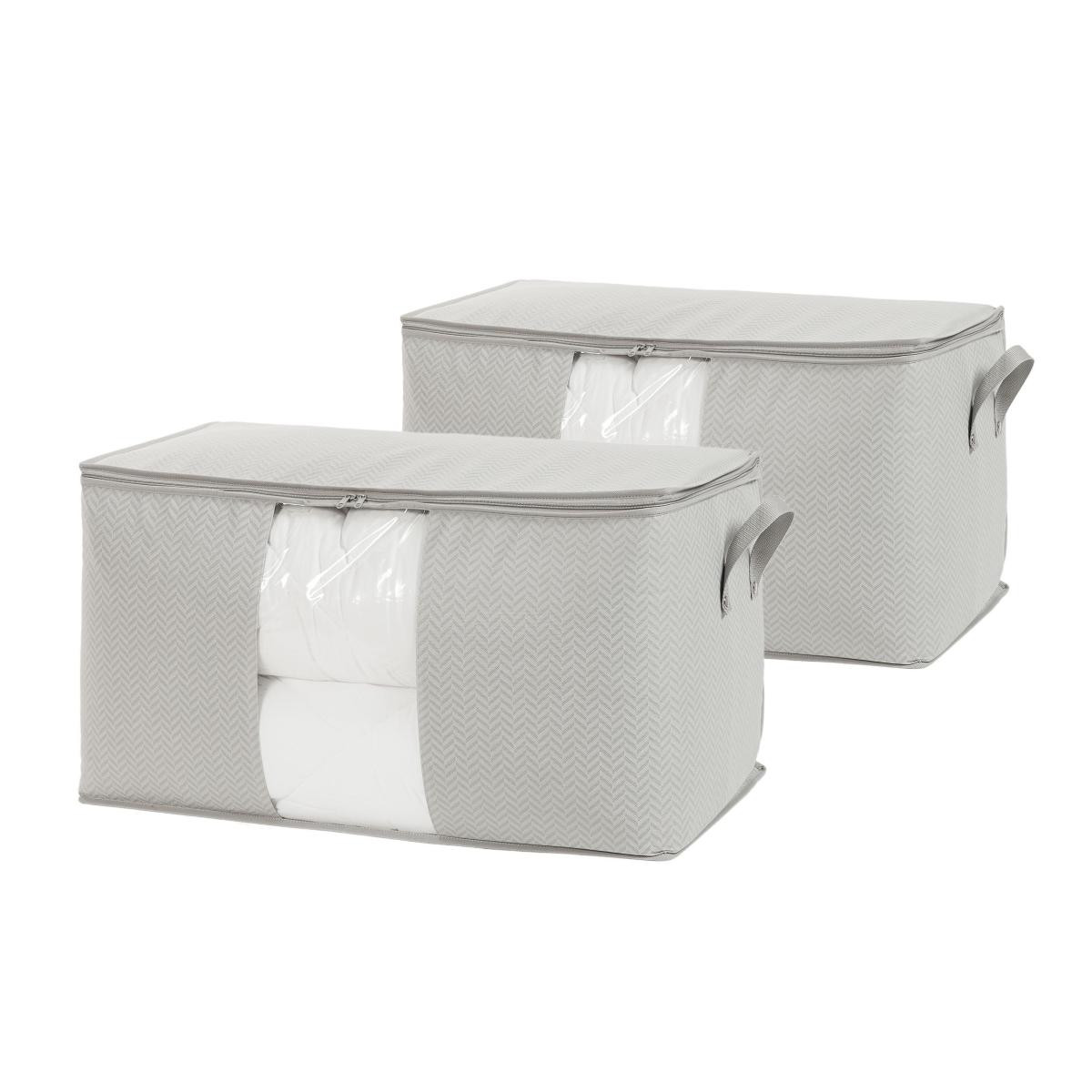 Ocean Home Textile 2'li Mega Boy Pvc Pencereli Gri Balıksırtı Hurç Set 75 X 40 X 40 Cm