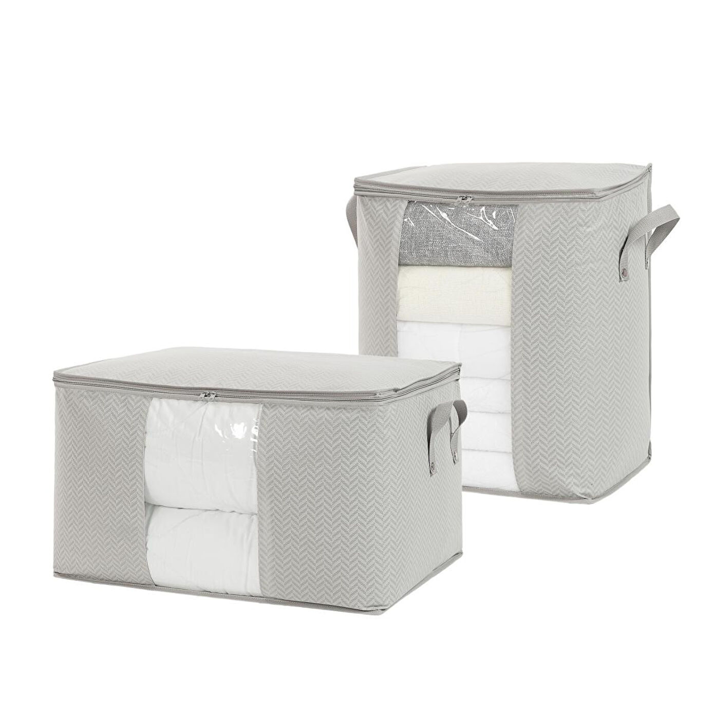 Ocean Home Textile 2'li Pvc Pencereli Gri Balıksırtı Hurç Set 1 Adet 45 X 30 X 50 / 1 Adet 60 X 43 X 35 Cm