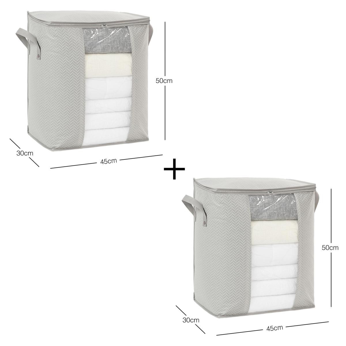 Ocean Home Textile 2'li Pvc Pencereli Gri Balıksırtı Hurç Set 45 X 30 X 50 Cm