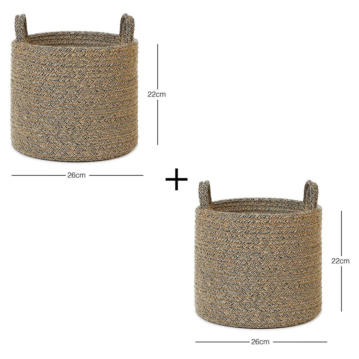 Ocean Home Textile 2'li Siyah Kırçıllı Jüt Halat Sepet Set 26 X 22 Cm