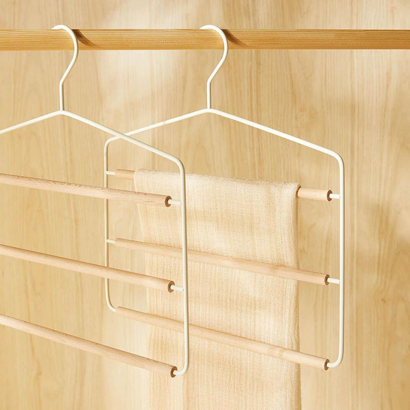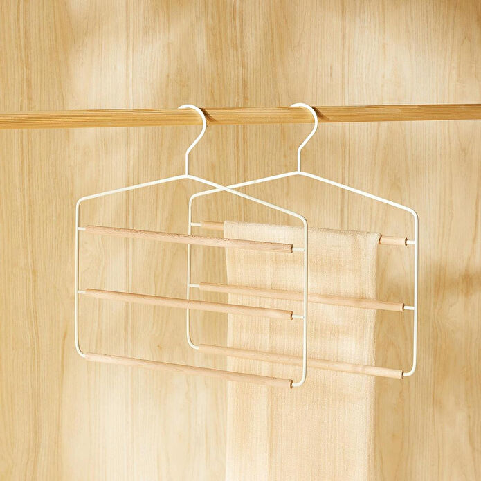 Ocean Home Textile 2'li 3 Katlı Ahşap Destekli Mat Beyaz Renk Metal Giysi Askısı Özellikleri