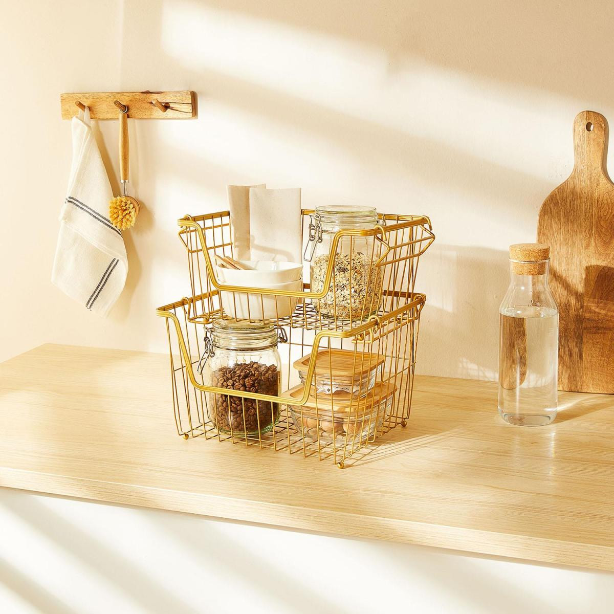Metal sepet; mutfakta meyve, sebze ve kavanozları düzenlemekten banyoda havlu ve bakım ürünlerini sergilemeye, salonda dergi ve aksesuarları toplamaktan ofiste evrakları organize etmeye kadar çok yönlü kullanım sunar. Ayrıca dolap içlerinde eşyaları düzenli tutmanıza yardımcı olur.
