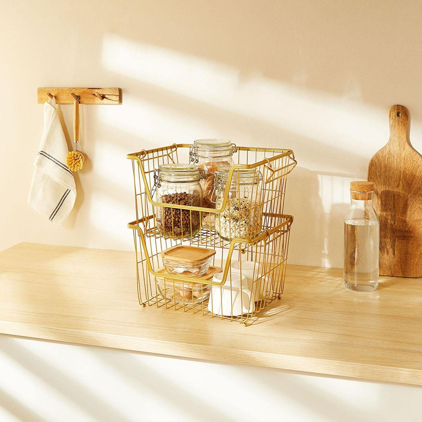 Metal sepet; mutfakta meyve, sebze ve kavanozları düzenlemekten banyoda havlu ve bakım ürünlerini sergilemeye, salonda dergi ve aksesuarları toplamaktan ofiste evrakları organize etmeye kadar çok yönlü kullanım sunar. Ayrıca dolap içlerinde eşyaları düzenli tutmanıza yardımcı olur.