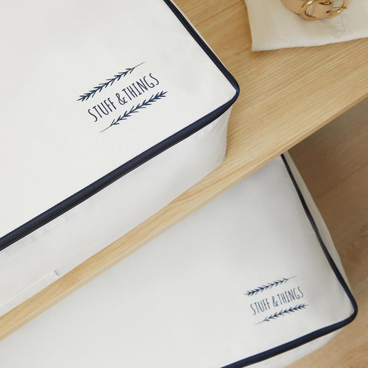 Ocean Home Textile 2'li Mega Boy Lacivert Fermuarlı Beyaz Renk Stuff & Things Baza Altı Hurç Set 74 X 46 X 22 Cm