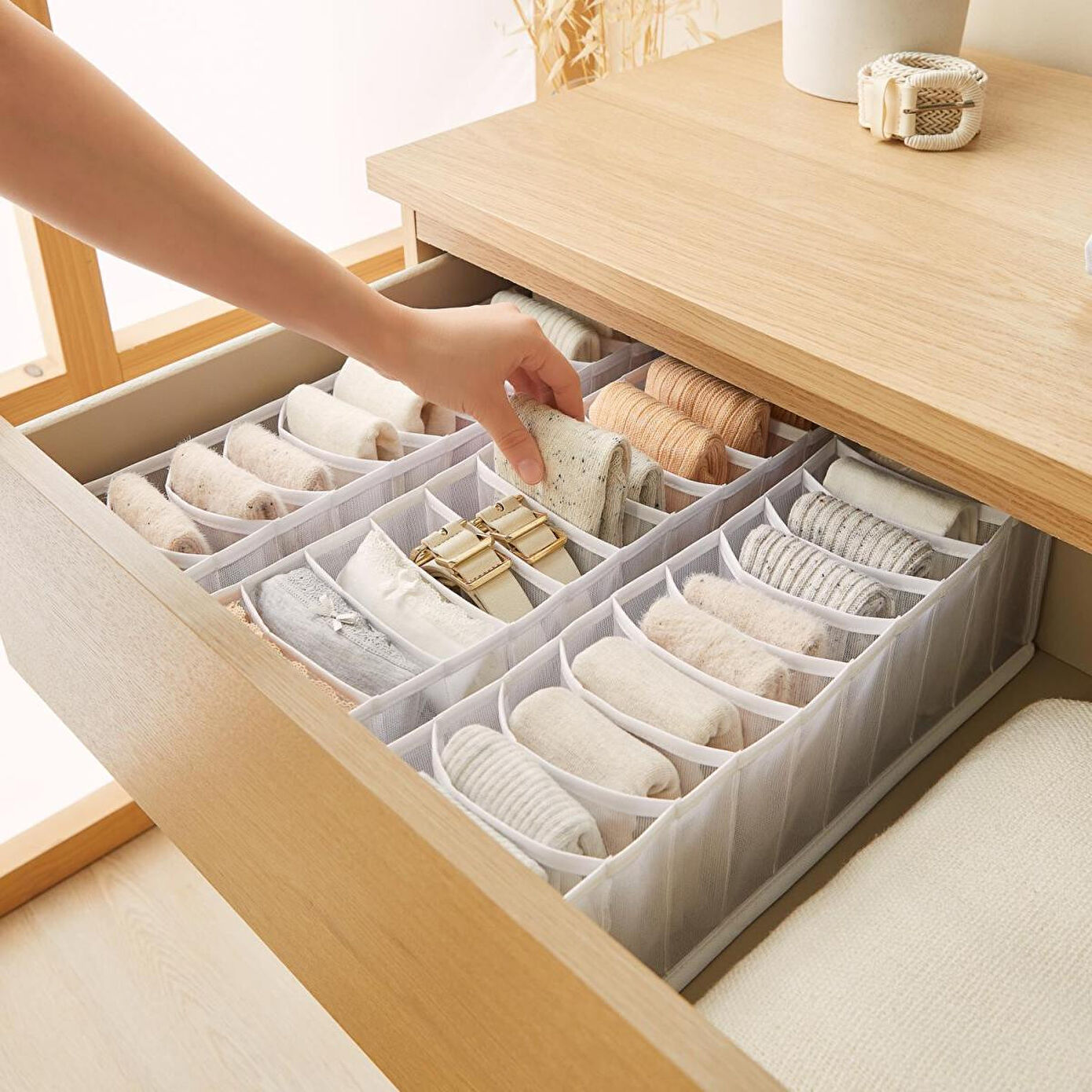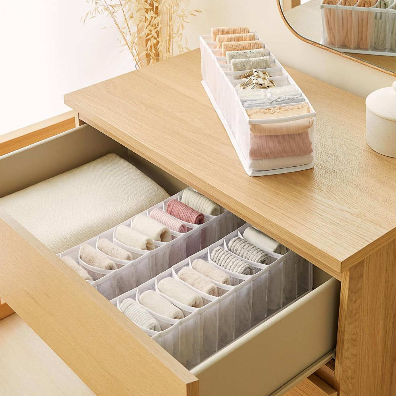 Çorap, takı, çamaşır, aksesuar gibi eşyaların düzenini sağlayan organizerler, çekmece içlerinin düzenini oluştururken üründe bulunan bölmeler sayesinde ihtiyaç duyulan eşyaların kolayca bulunmasına yardımcı olur.
