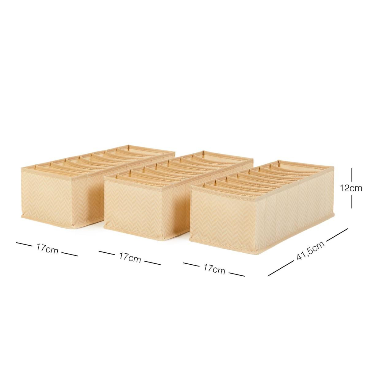 Ocean Home Textile 3'lü 8 Bölmeli Bej Balıksırtı Çekmece Düzenleyici Set