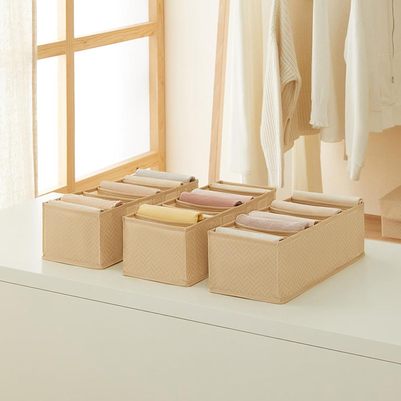 Ocean Home Textile 3'lü 8 Bölmeli Bej Balıksırtı Çekmece Düzenleyici Set Özellikleri
