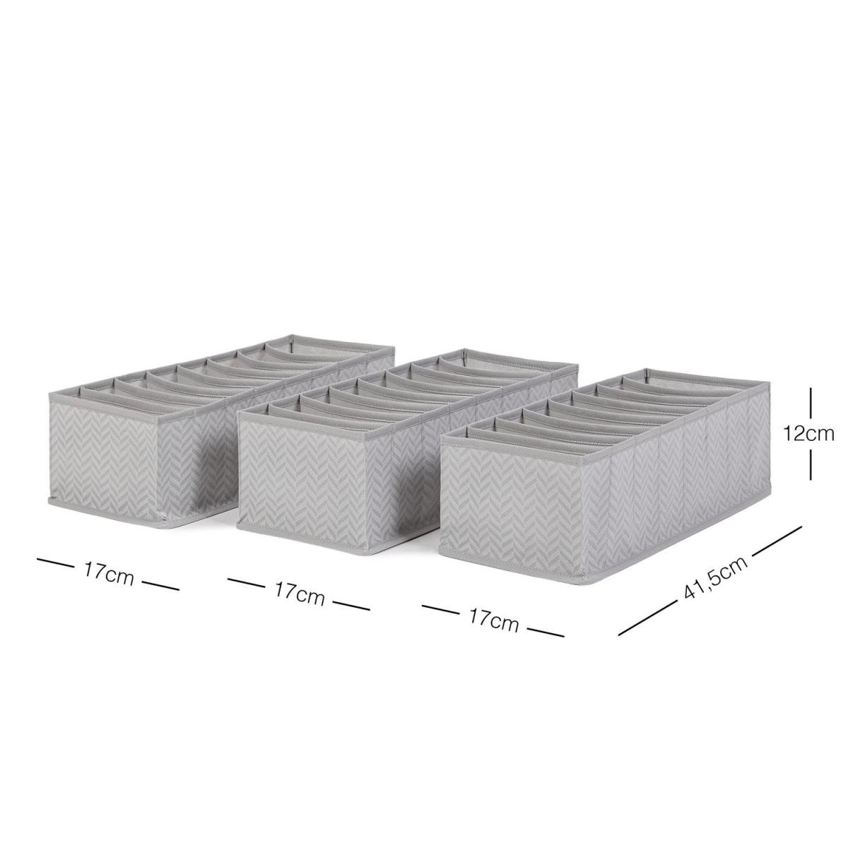 Ocean Home Textile 3'lü 8 Bölmeli Gri Balıksırtı Çekmece Düzenleyici Set