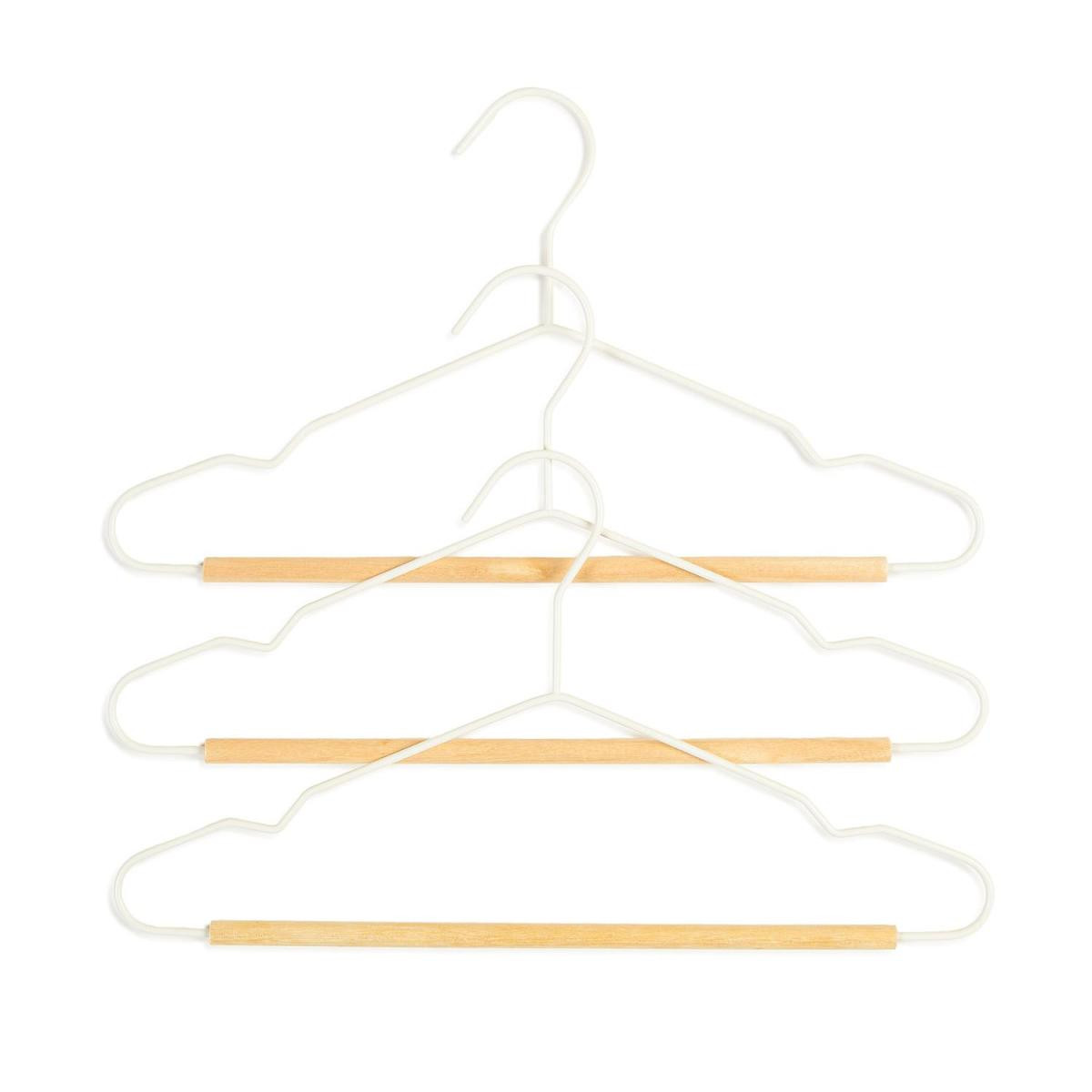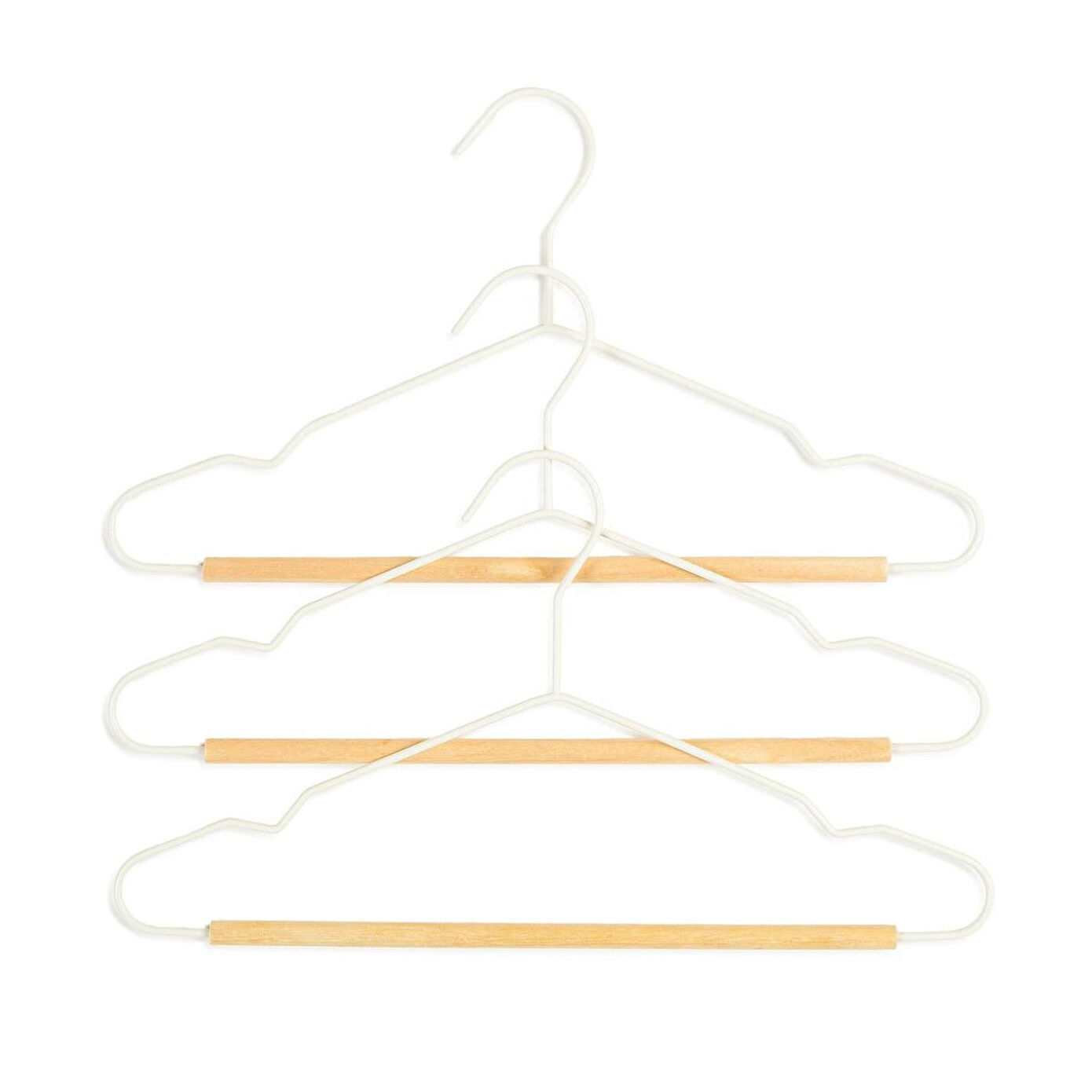 Ocean Home Textile 3'lü Ahşap Destekli Mat Beyaz Renk Kauçuk Kaplamalı Metal Çocuk Giysi Askısı 18 X 32 X 0.3 Cm