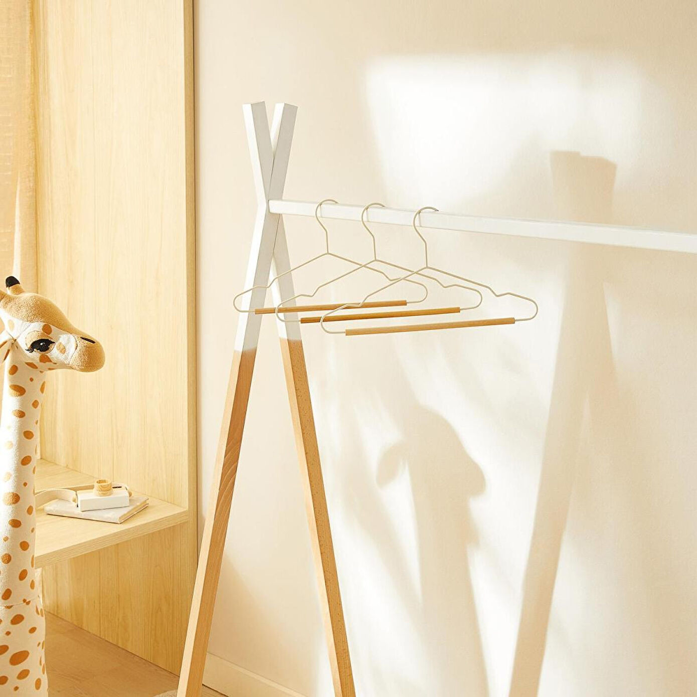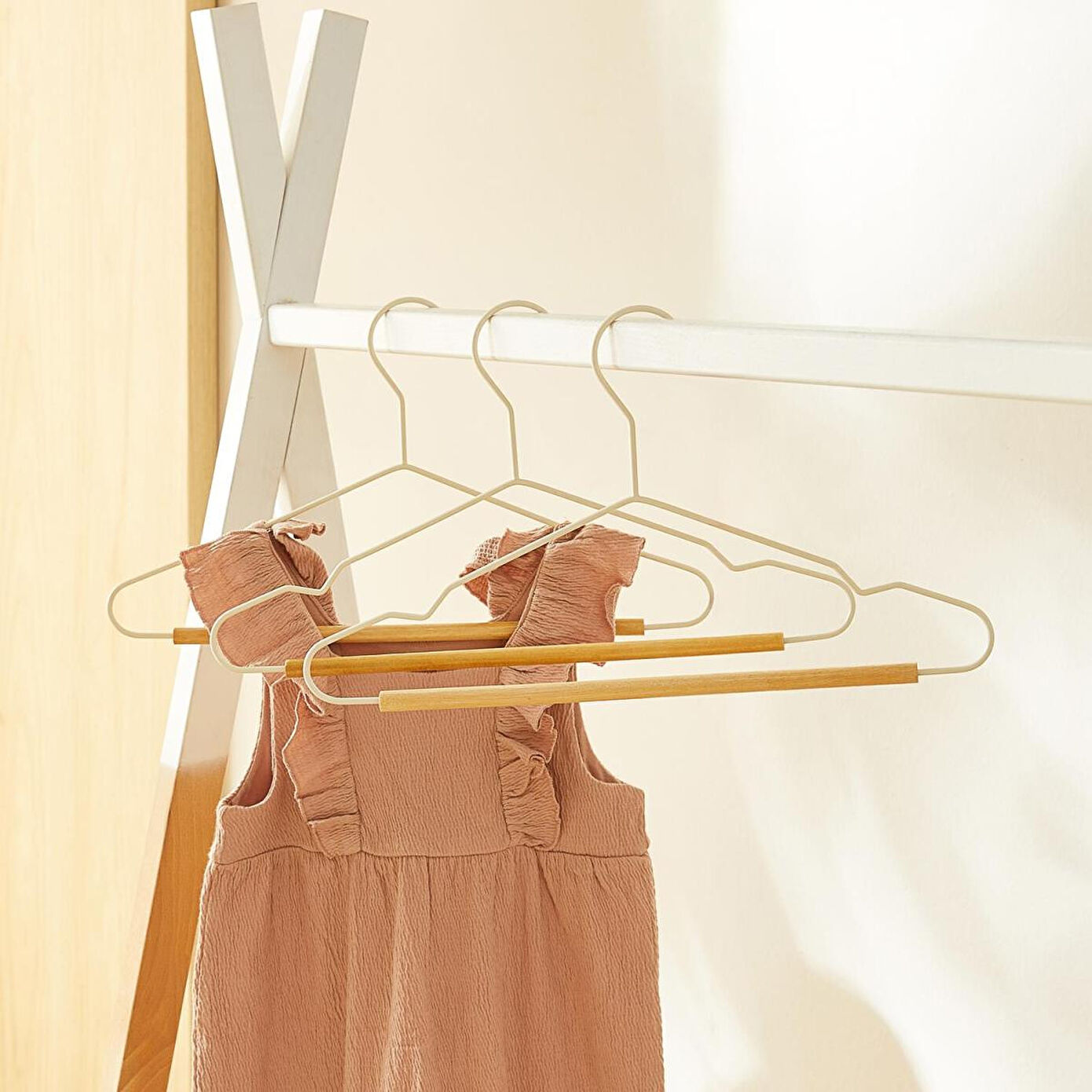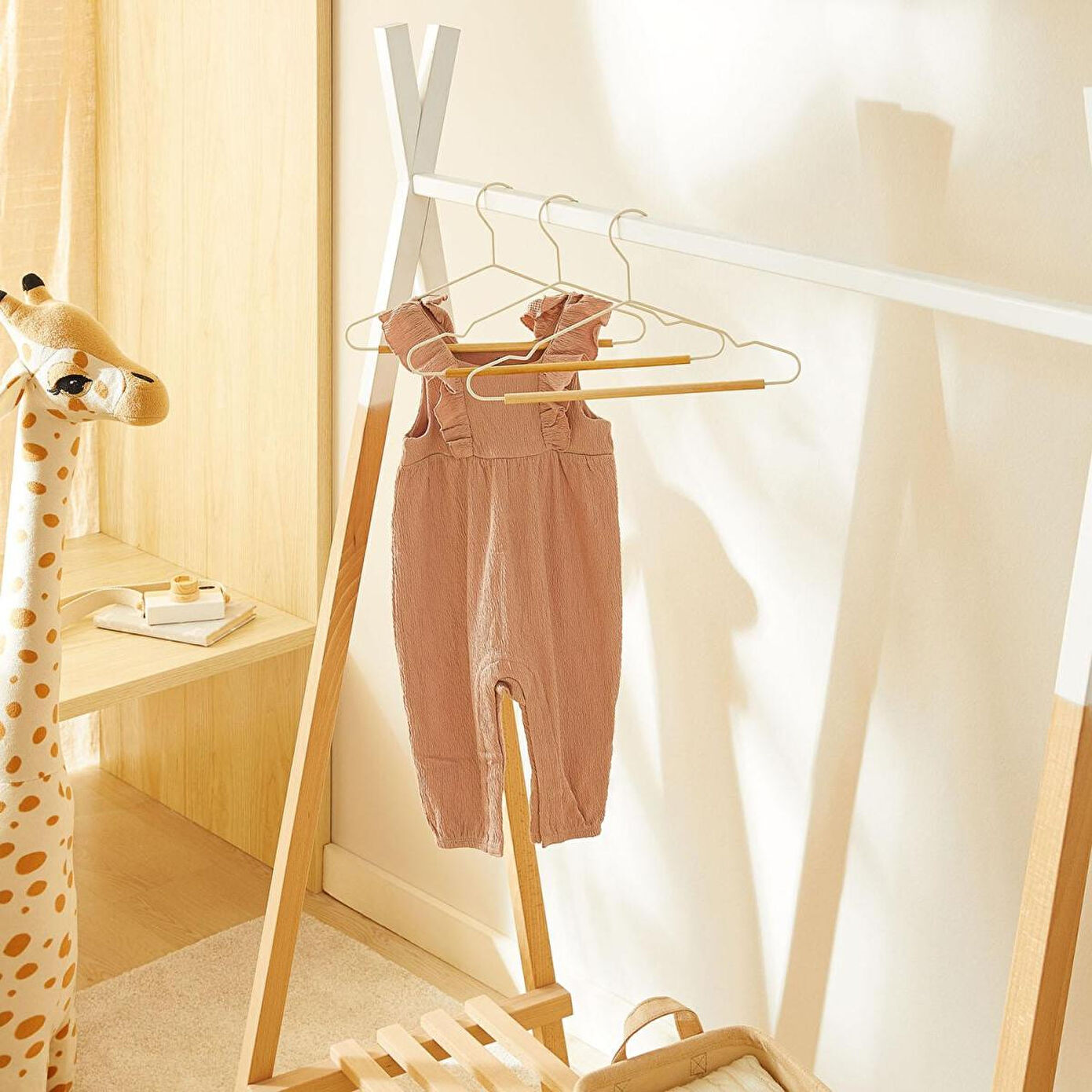 Çocuk kıyafet askıları zarif mat kauçuk kaplama detayıyla, kayma riskini en aza indirerek giysilerin kusursuzca yerinde kalmasını sağlar.