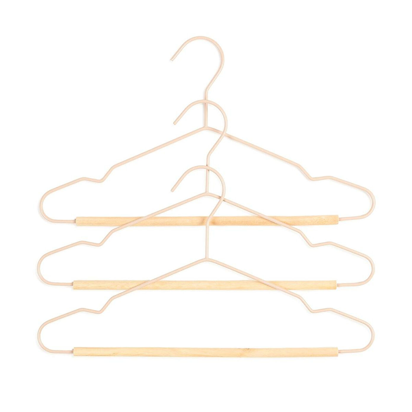 Ocean Home Textile 3'lü Ahşap Destekli Mat Pudra Pembe Renk Kauçuk Kaplamalı Metal Çocuk Giysi Askısı 18 X 32 X 0.3 Cm