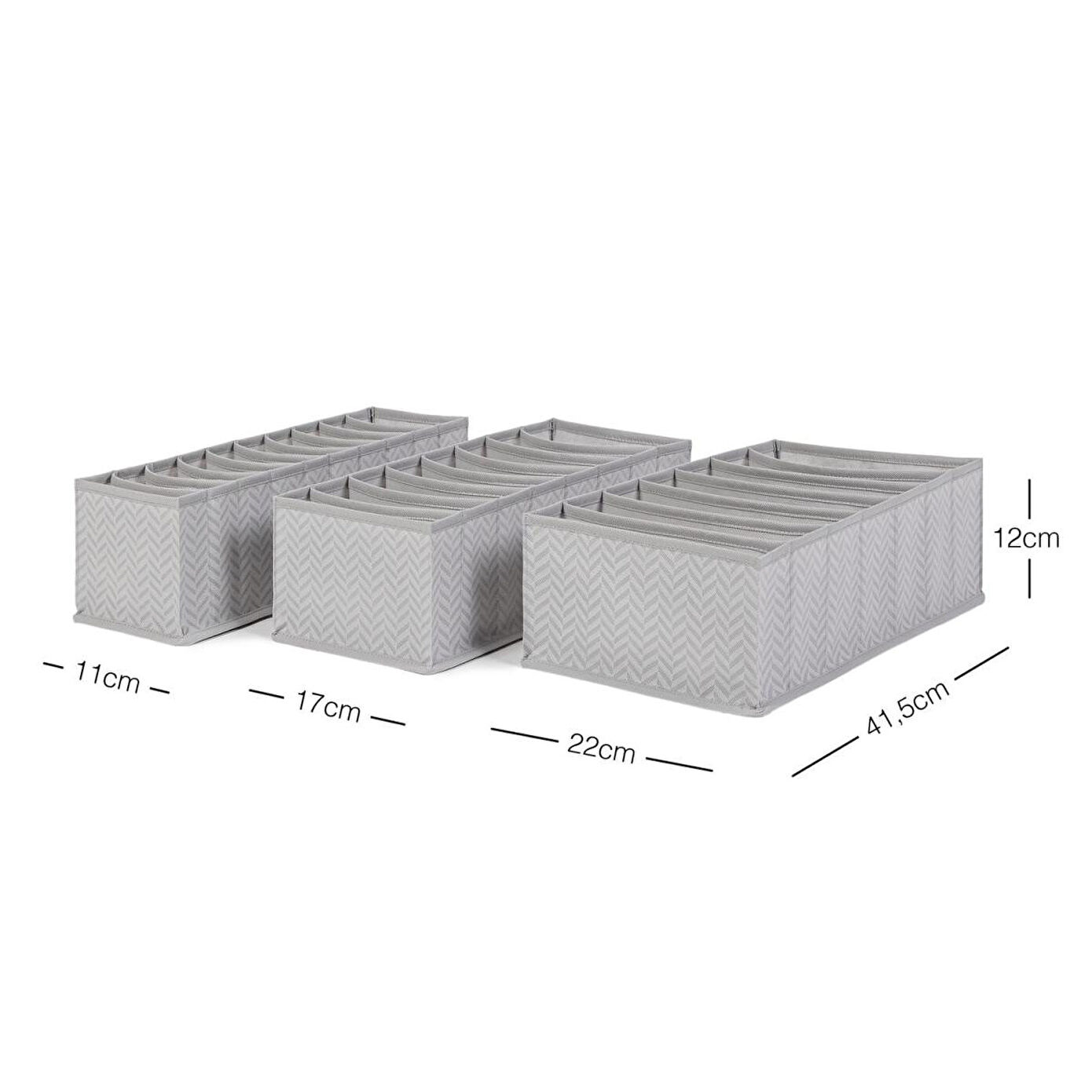 Ocean Home Textile 3'lü Bölmeli Gri Balıksırtı Çekmece Düzenleyici Set