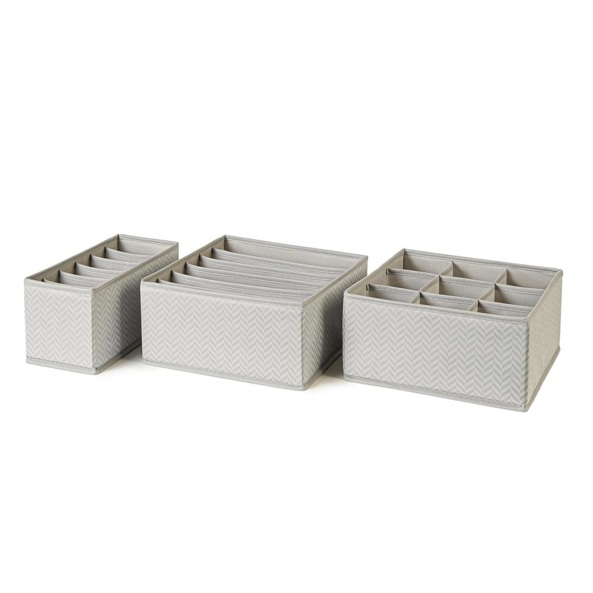 Ocean Home Textile 3'lü Bölmeli Gri Balıksırtı Çekmece İçi Düzenleyici Kutu Set