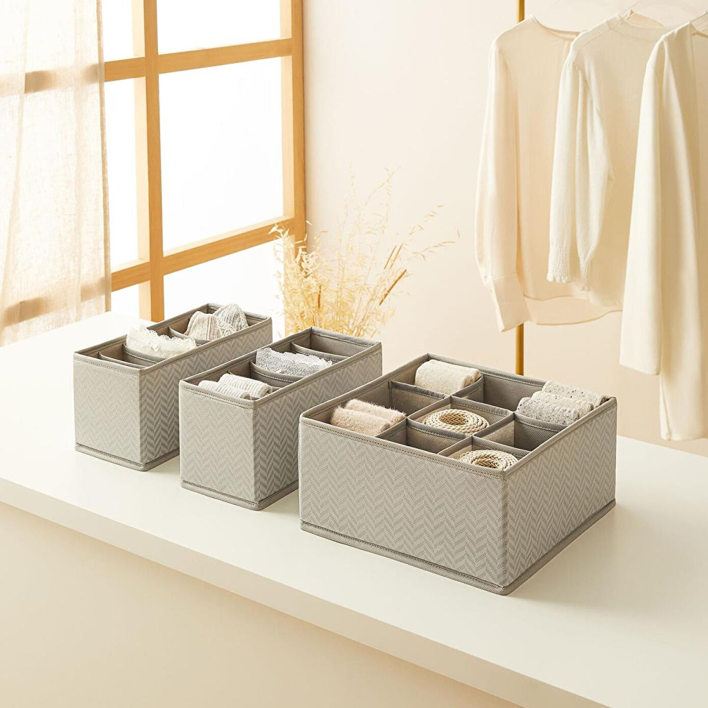 Ocean Home Textile 3'lü Bölmeli Gri Balıksırtı Desenli Çekmece İçi Düzenleyici Kutu Set