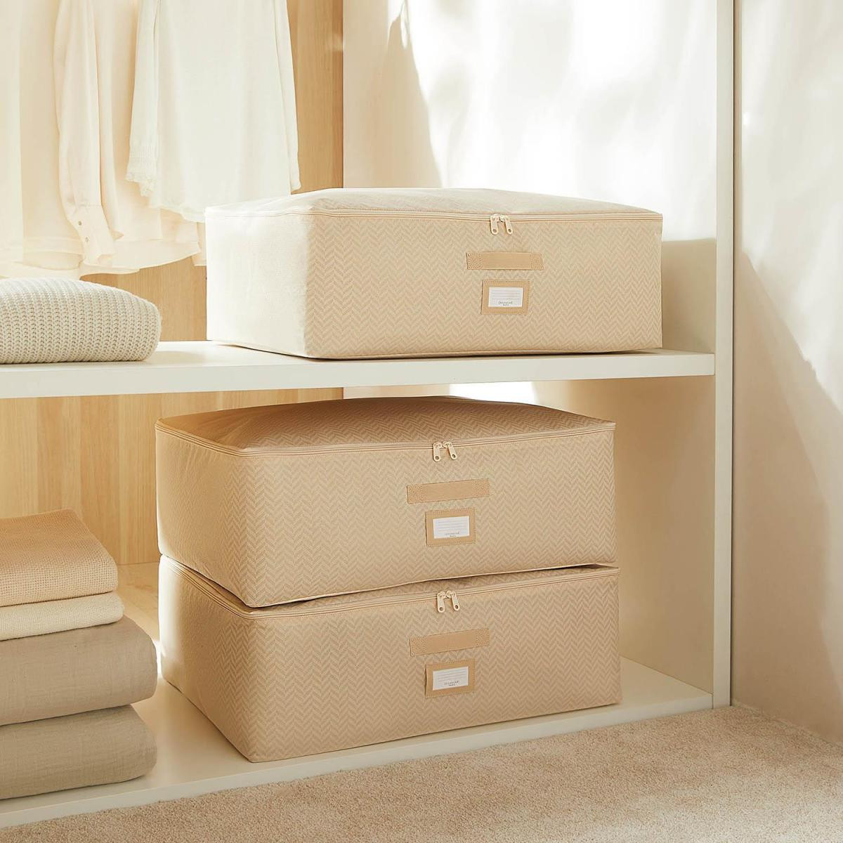 Ocean Home Textile 3'lü Büyük Boy Bej Balıksırtı Baza Altı Hurç Set 62 X 46 X 22 Cm